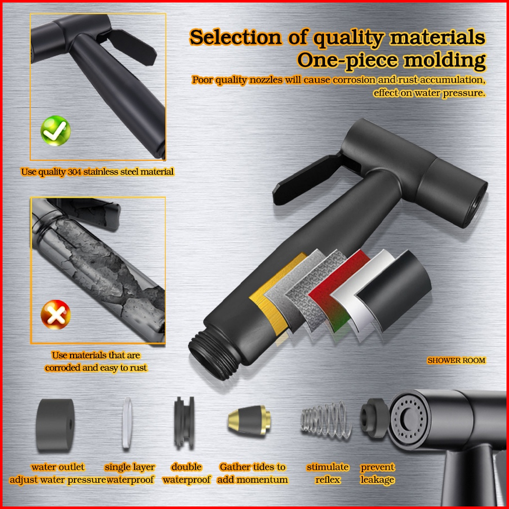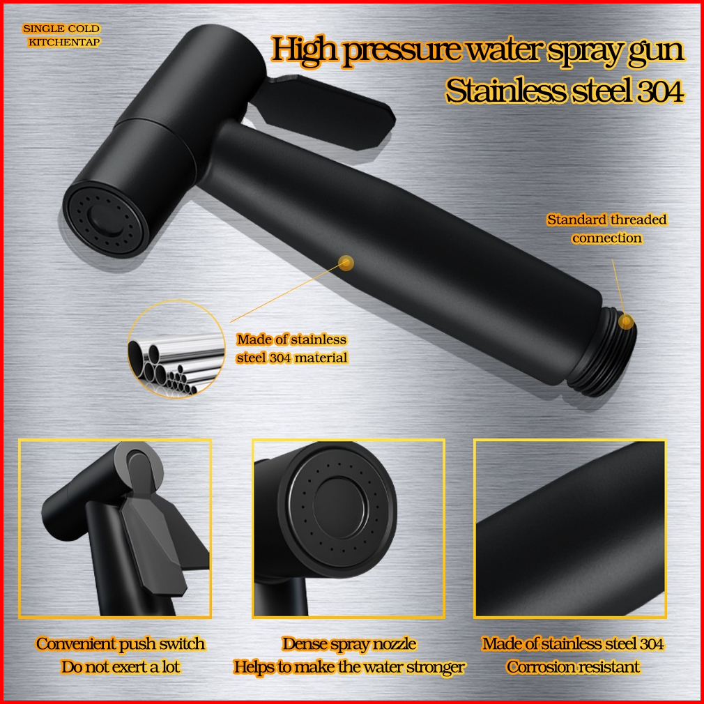 Sus 304 Jet Shower Toilet Set Shower Bidet Shower Cebok Sower Spray Hitam Stainless Steel