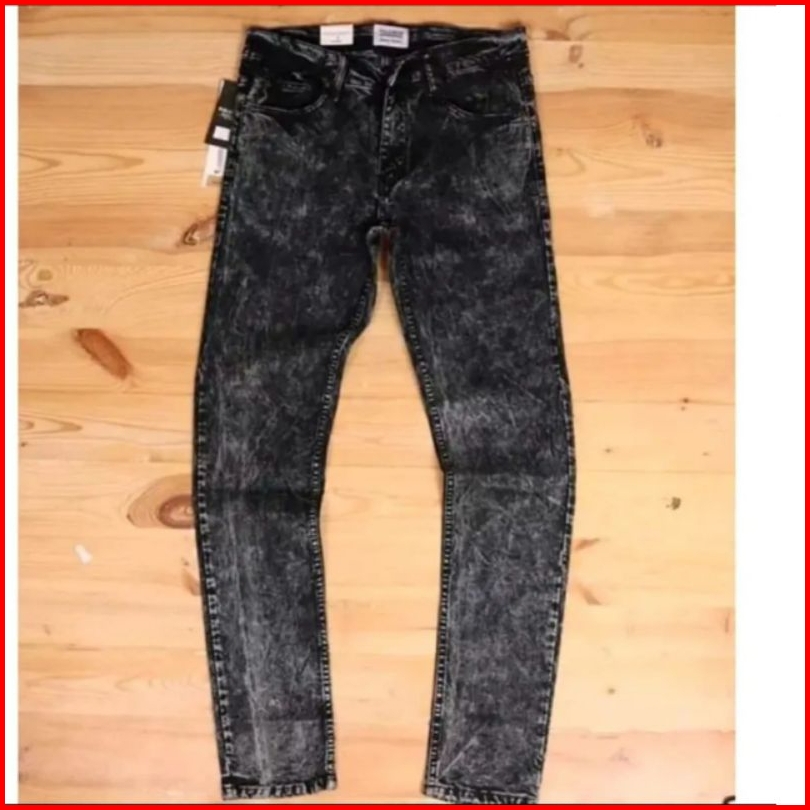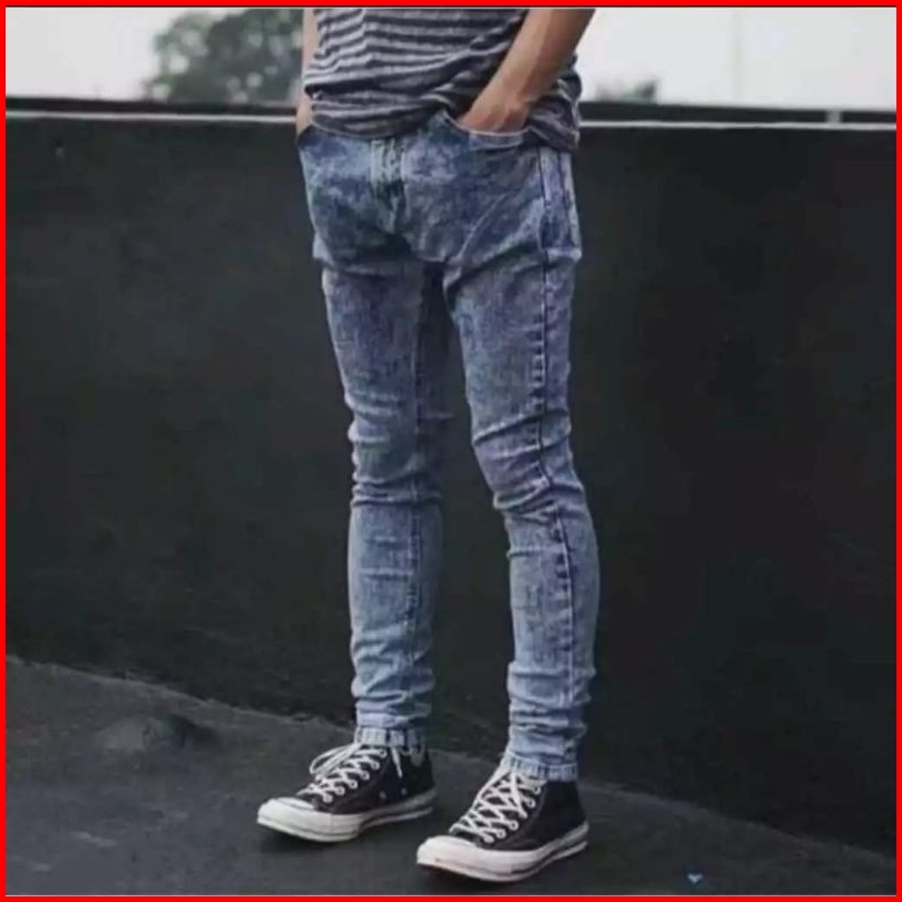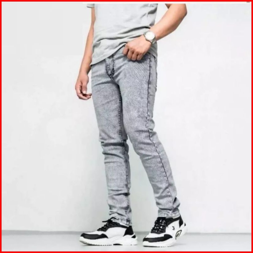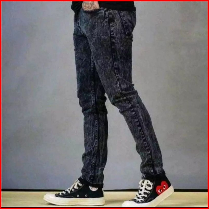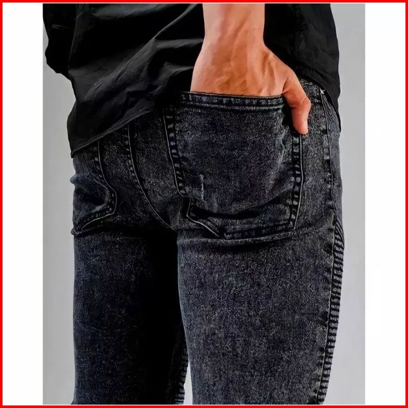 Celana Jeans Pria Panjang Street Distro Fashion Cowok Style Snow Hitam Stretch