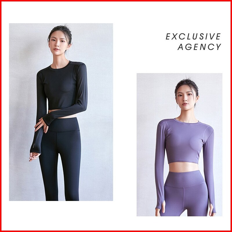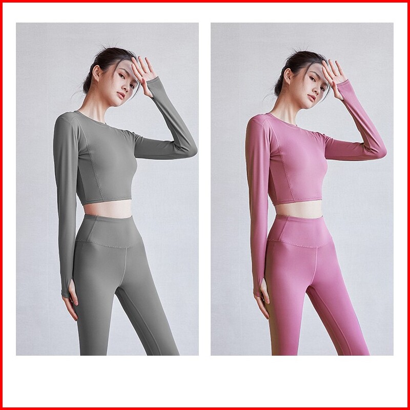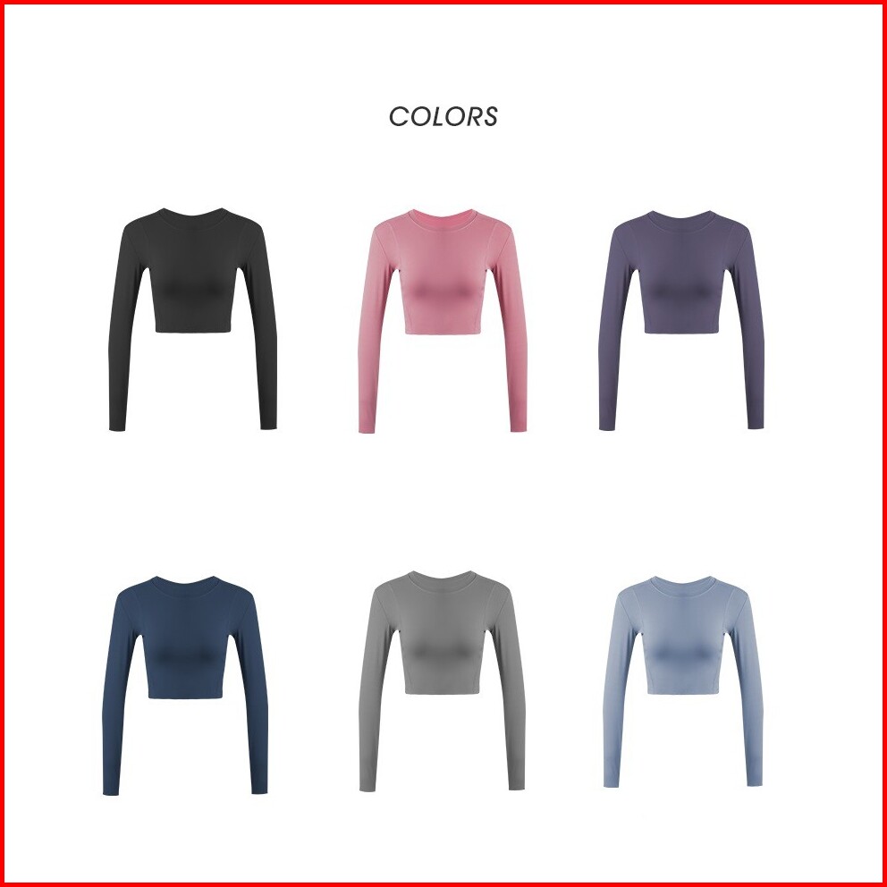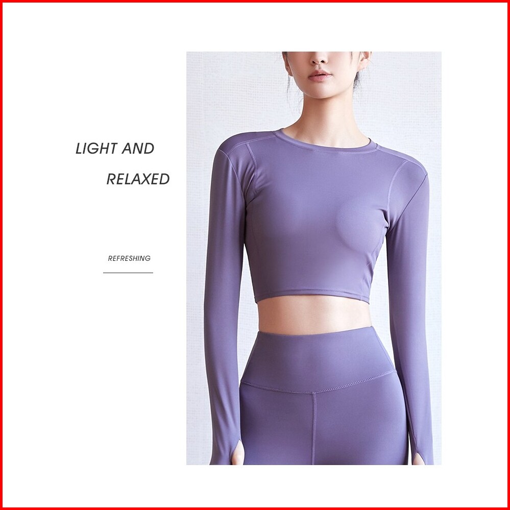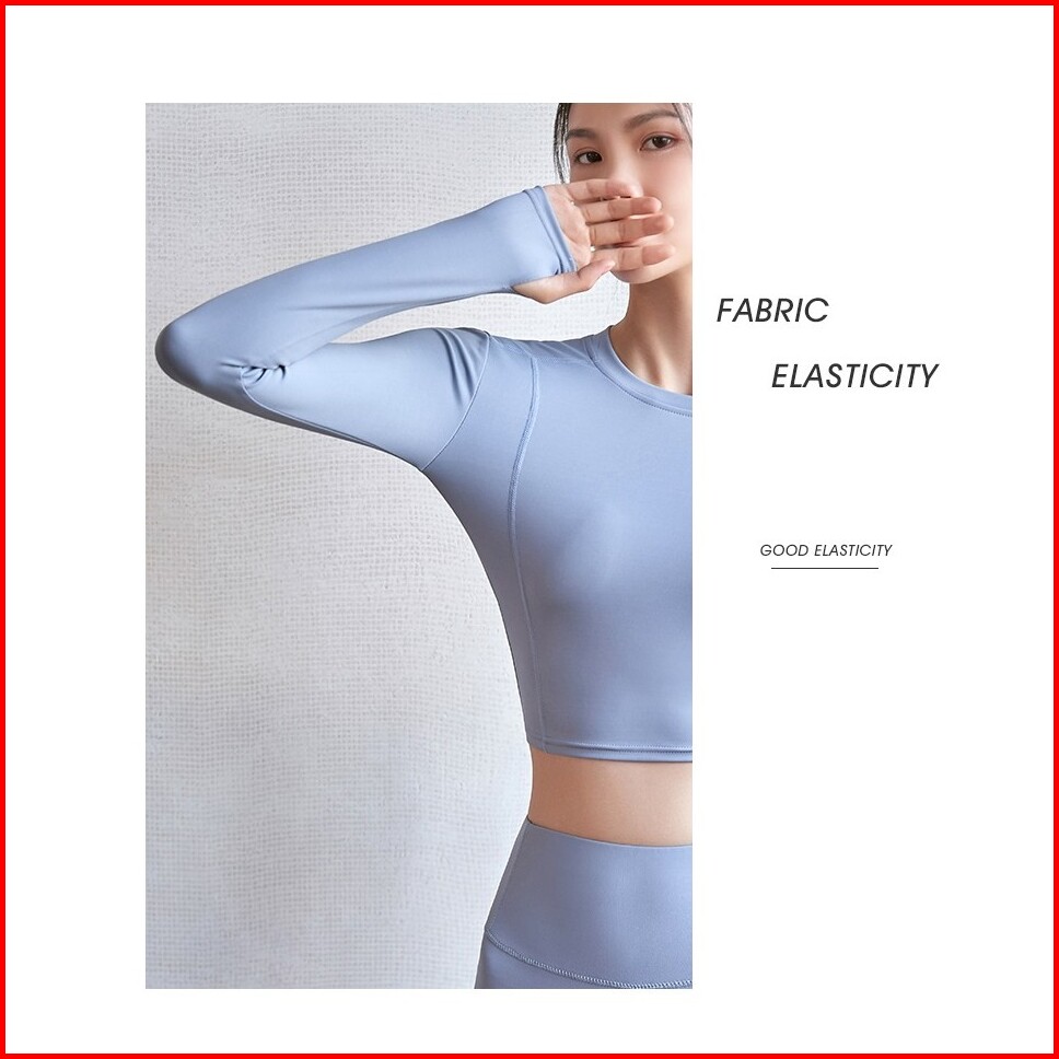 Baju Olahraga Wanita Atasan Cropp Polos Lengan Panjang Yf001