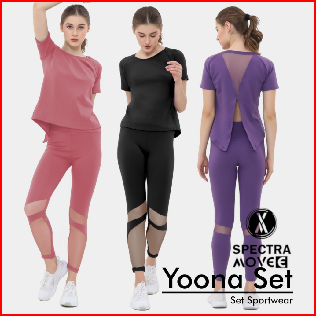 Setelan Senam Yoona Set Baju Senam Murah Setelan Olahraga Wanita Legging Zumba Celana Senam Aerobic Bandung