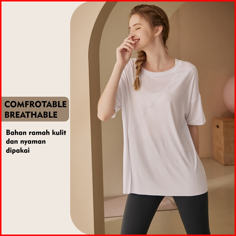 Baju Atasan Olahraga Wanita Lengan Pendek Kaos Oversize T-shirt Yoga Yf103