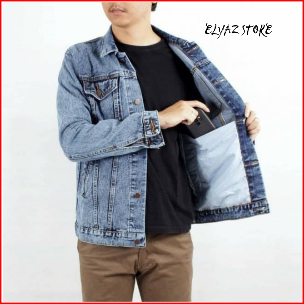 Jaket Jeans Pria Denim 12 Ons Tebal Lembut Ukuran M-3xl Warna Menarik