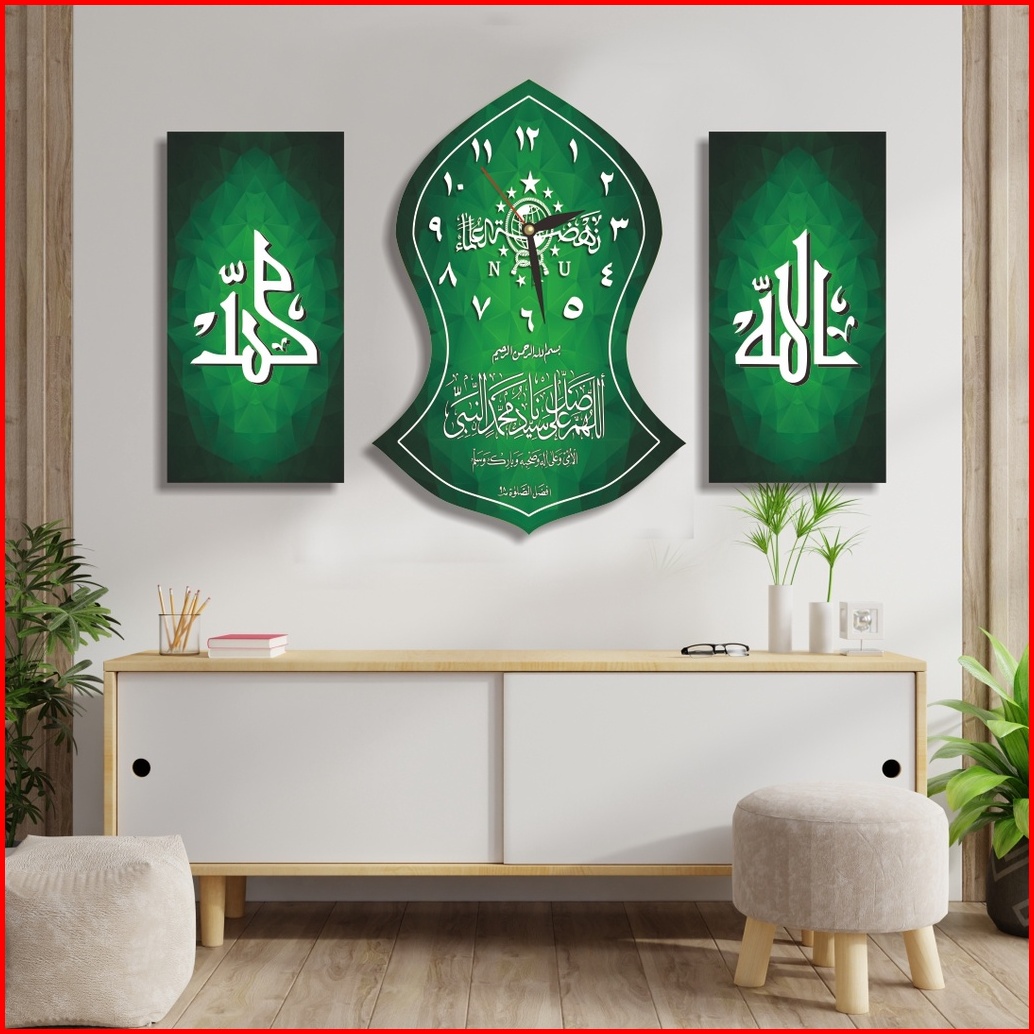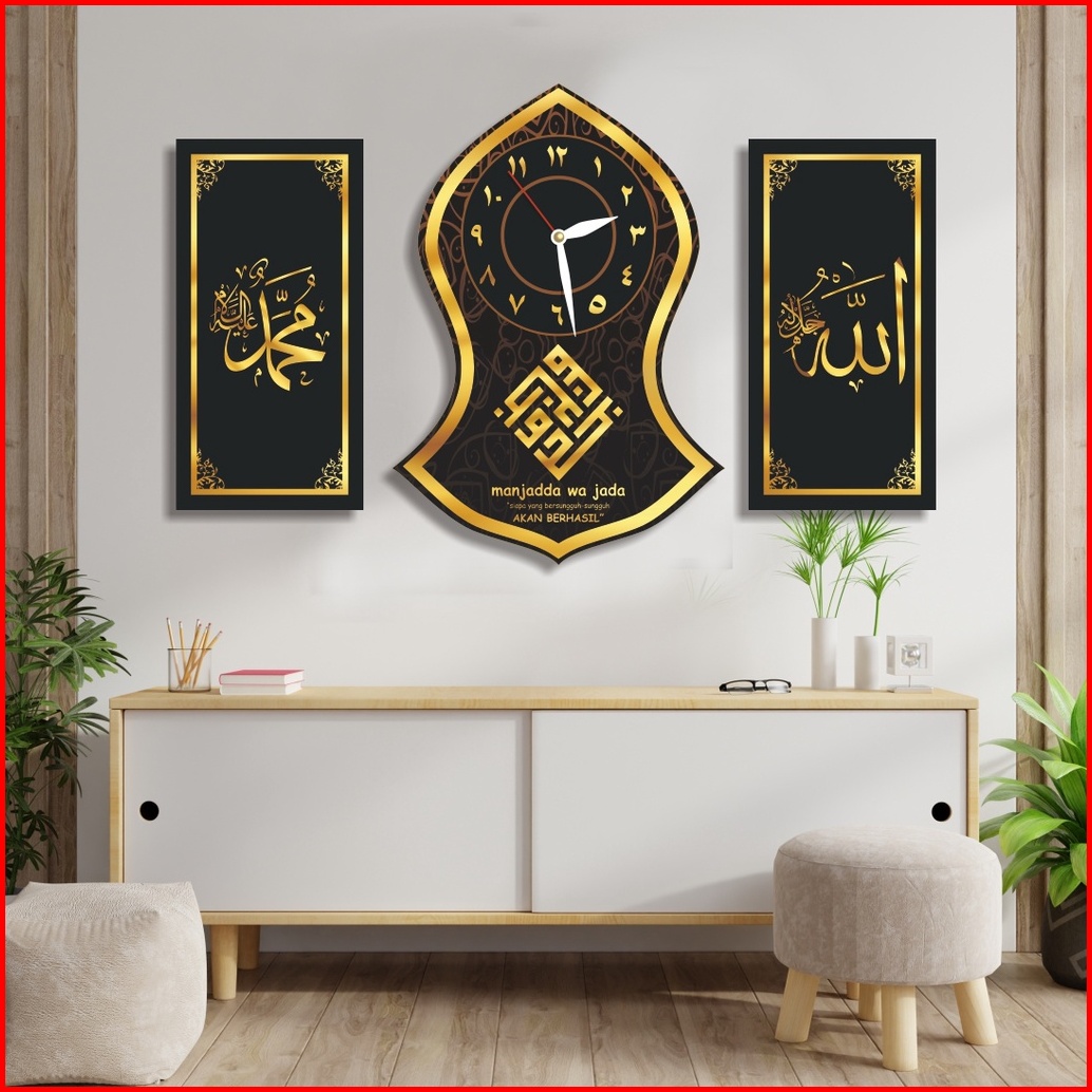 Jam Dinding Ruang Tamu Jam Dinding Kaligrafi Islami Jam Dinding Terompah Manjada Wajada C76