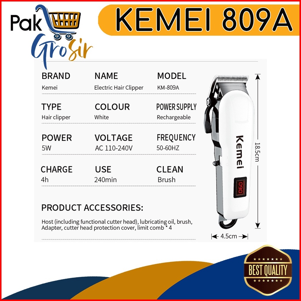Kemei Km 809a Pg 809a Alat Mesin Cukur Rambut Potong Wireless Hair Clipper Rechargeable Barbershop Pangkas