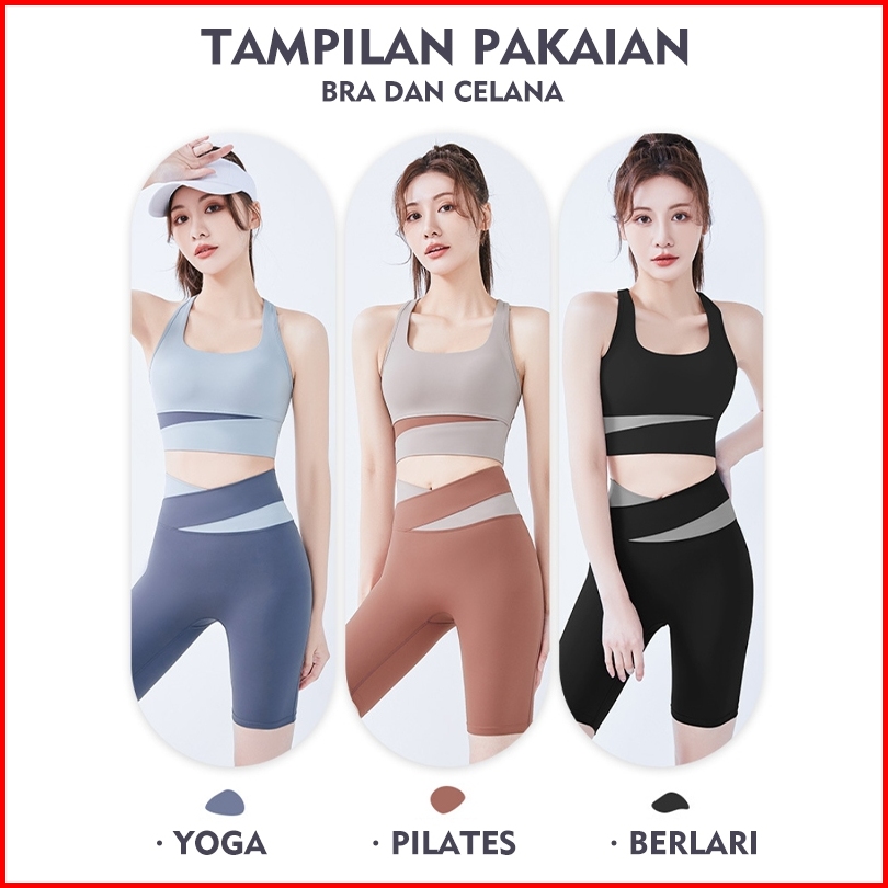 Setelan Baju Olahraga Wanita Bra Olahraga Celana Olahraga Wanita Sport Bra Legging Pendek Yf054