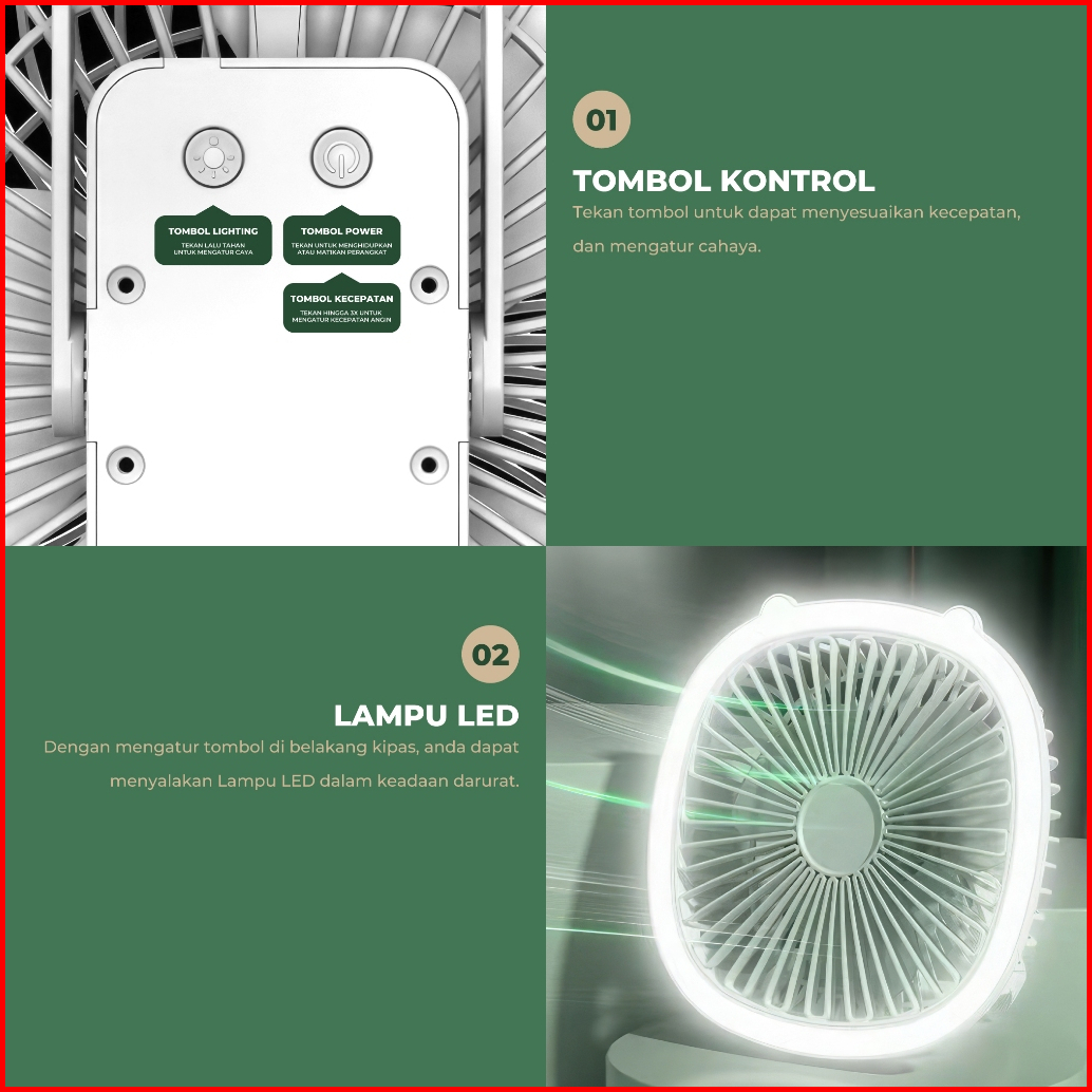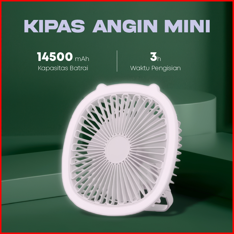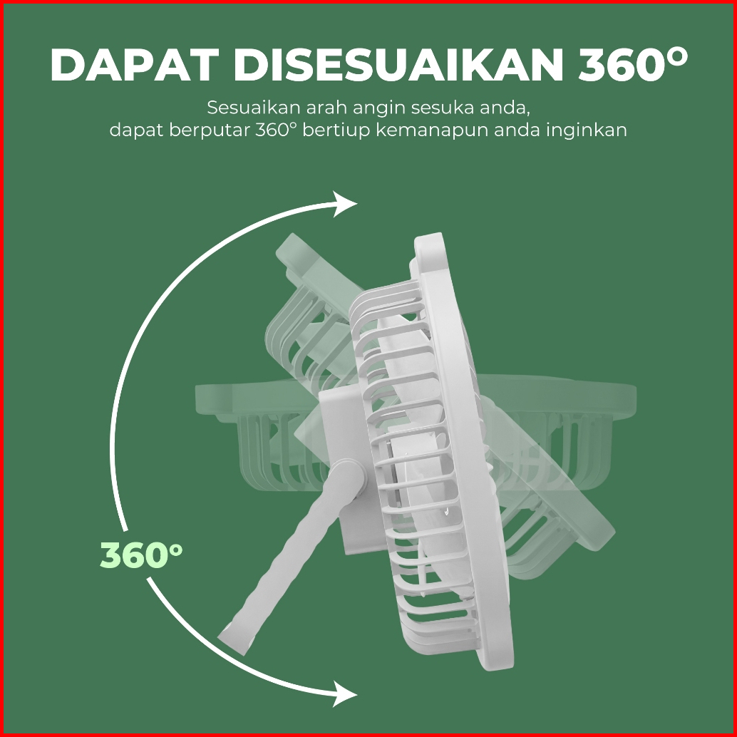 World Home Kipas Angin Mini Portable Meja Charger Usb Dapat Digantung Dengan Lampu Led Tahan 8 Jam