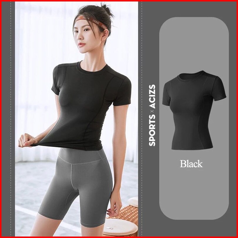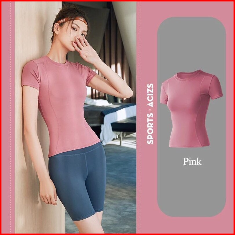 Hooga - Kaos T-shirt Baju Olahraga Wanita Lengan Pendek Atasan Olahraga Yoga Gym Fitness Rsc03