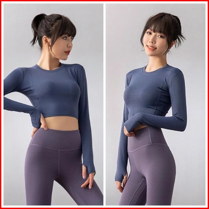 Baju Olahraga Wanita Lengan Panjang Atasan Aerobik Wanita Mtcx
