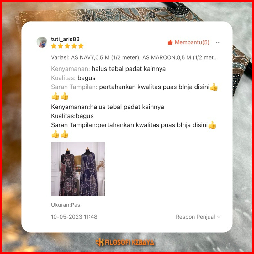 AS SAGE, AS SILVER, AS MOCCA, AS NAVY, AS MAROON, CENDRAWASIH SILVER, CENDRAWASIH GOLD, CERI SILVER, CERI MOCCA, SN SILVER LILAC, SN SAGE, SN COKELAT, SN TERAKOTA, SR MOCCA, LV NAVY, PAKIS IJO, CMR COKSU, CMR DUSTY, AUREL MOCCA, AUREL ABU, AS2 MOCCA, AS2 MAROON, AS2 ABU NAVY, JENNY TERAKOTA, JENNY SAGE, JENNY MOCCA, JENNY NAVY DARK, KOIN LILAC, AURORA TERAKOTA, AURORA SAGE, AURORA NAVY, AURORA MOCCA, DK2 TOSKA, DK2 ARMY, DK2 TARO