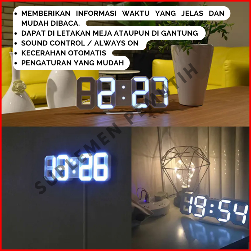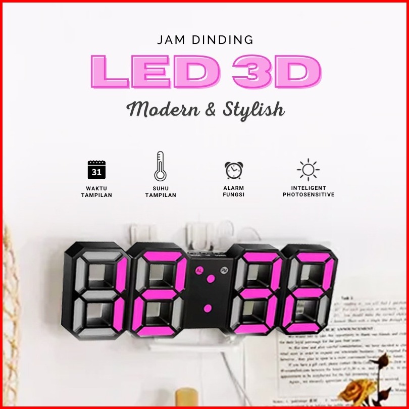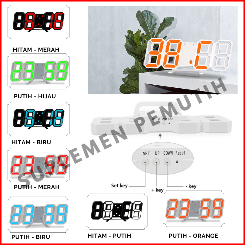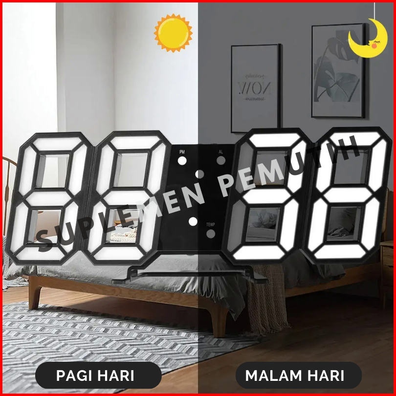 Jam Dinding Digital Led Jam Meja-alarm-suhu Jam 3d Besar Modern
