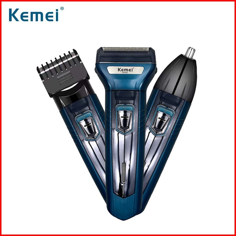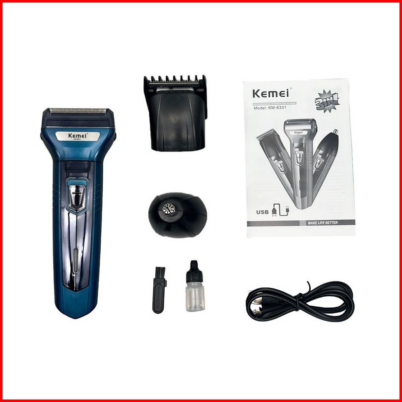 Kemei Km 6331 Mesin Alat Cukur Rambut 3 In 1 Jenggot Kumis Bulu Hidung Elektrik Shaver