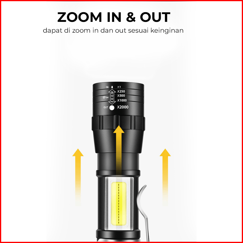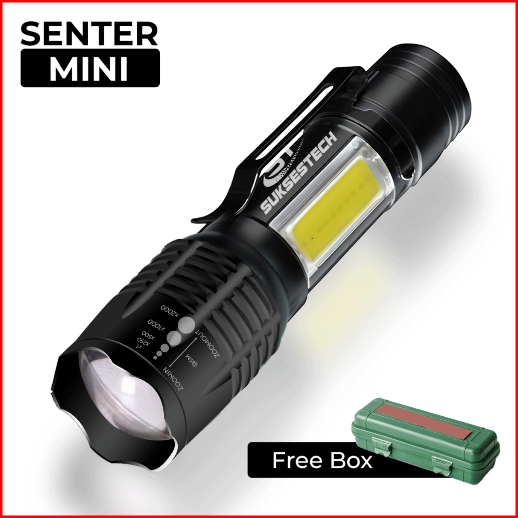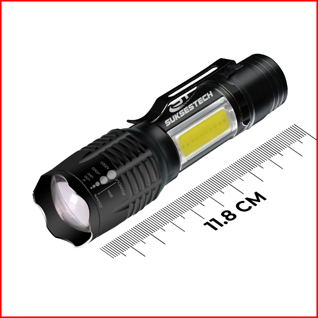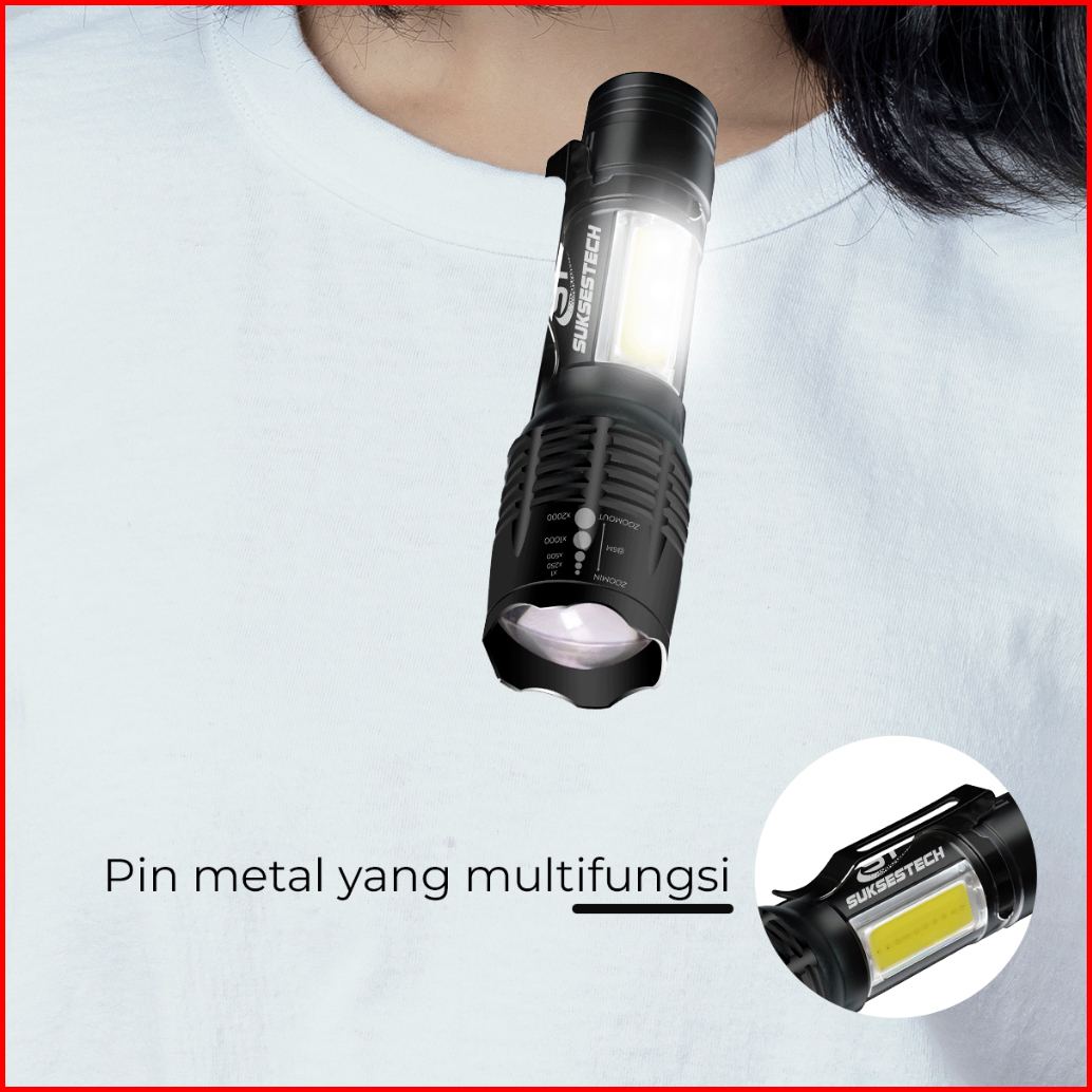 Suksestech Senter Zoom In Out Terang 4 Mode Senter Led Aluminium Free Box 1804