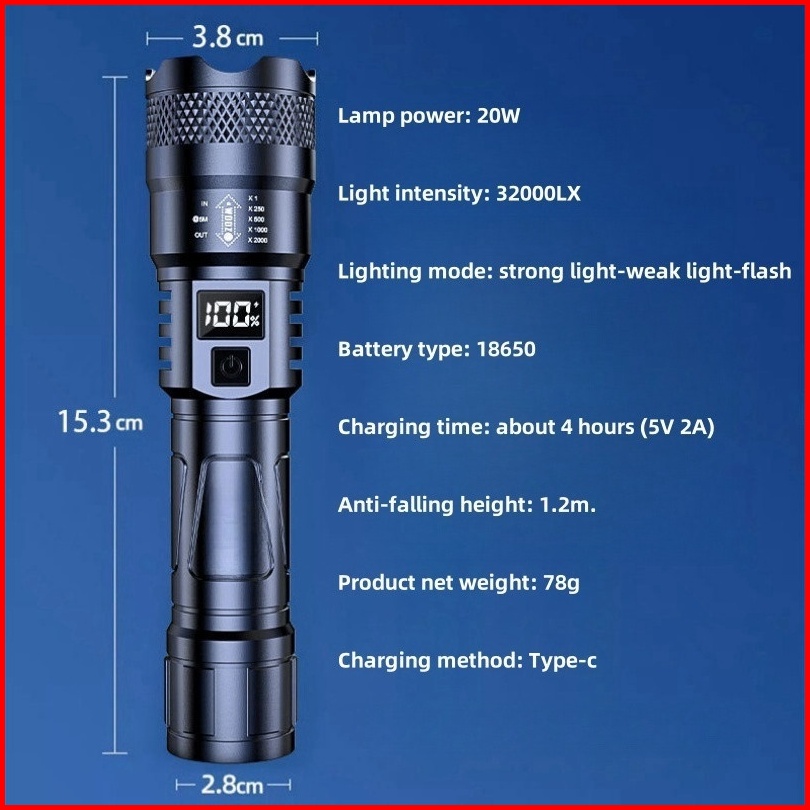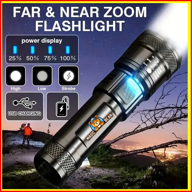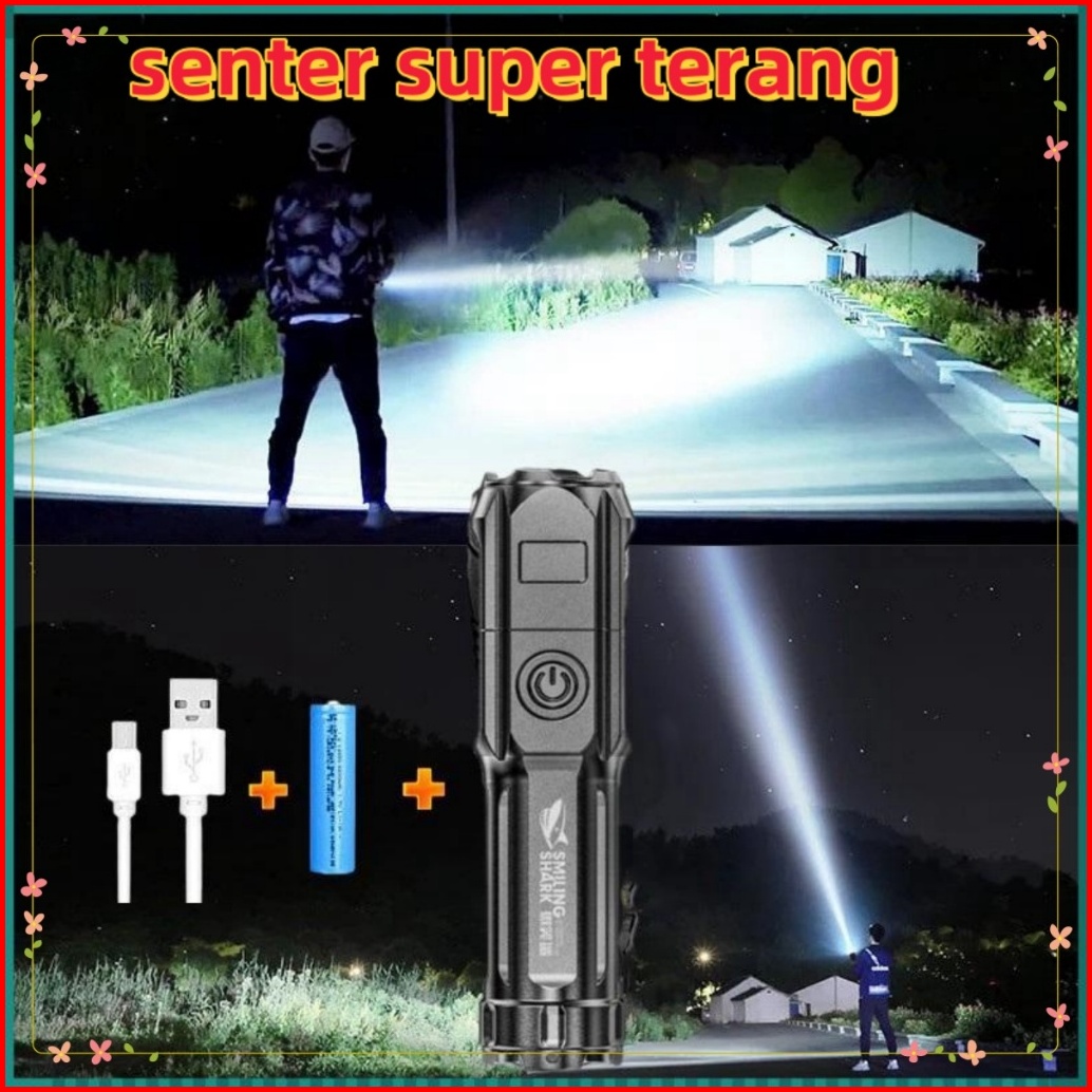 Senter Super Terang Waterproof Led Tactical Anti Air Lampu Swat Zoom Murah Free Charger