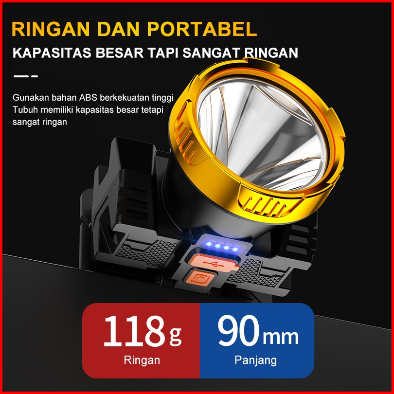 Senter Kepala Terang Baterai Lithium Headlamp Berkemah Led Senter Berkemah Headlamp Outdoor Led Senter Kepala T10
