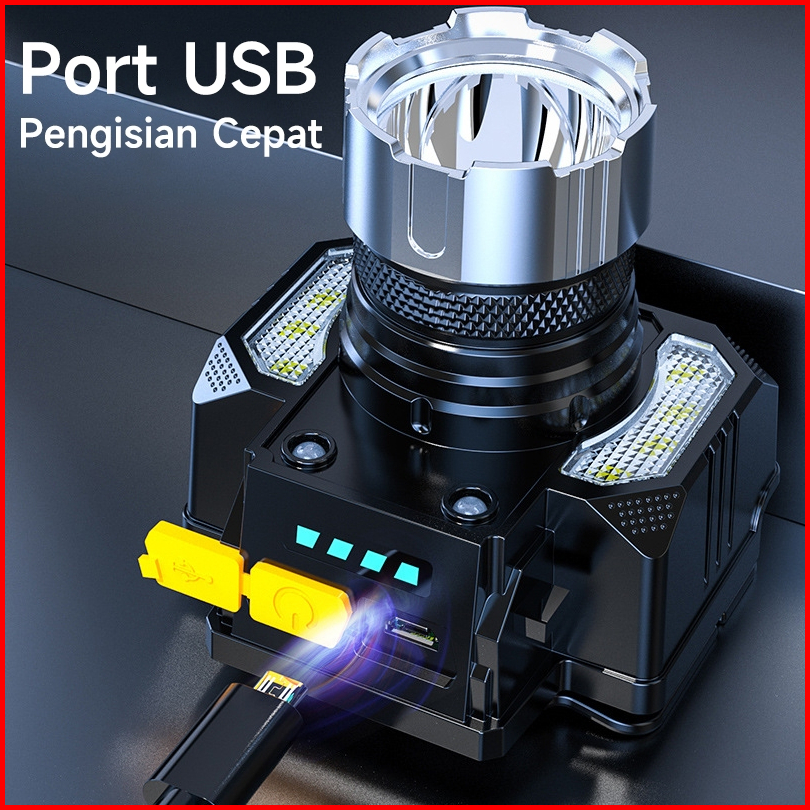 Super Senter Kepala Led Lampu Depan Tahan Ipx4 Air Sensor Gerak Led Senter Super Terang 4 Mode Cahaya 2000 Lumen Jarak J