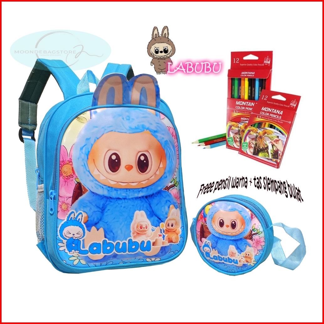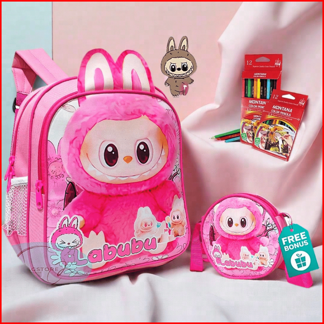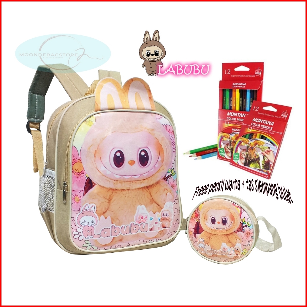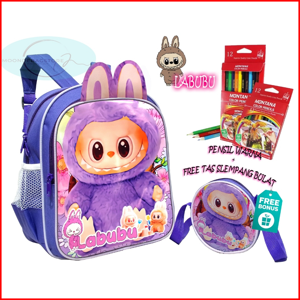 Tas Ransel Labubu Tas Anak Perempuan Sekolah Paud Tk Sd Tas Ransel 2 In 1 Karakter Labubu Free Tas Slempang Bulat