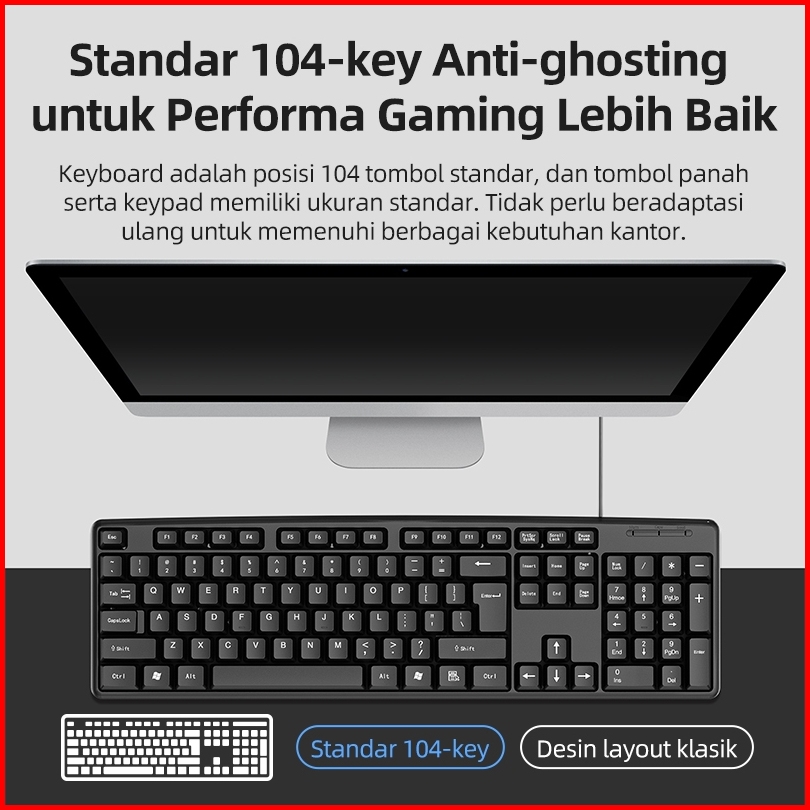 Bikinlaku Keyboard Usb Wired 104 Key Full Size Komputer Keyboard For Office Laptop Pc