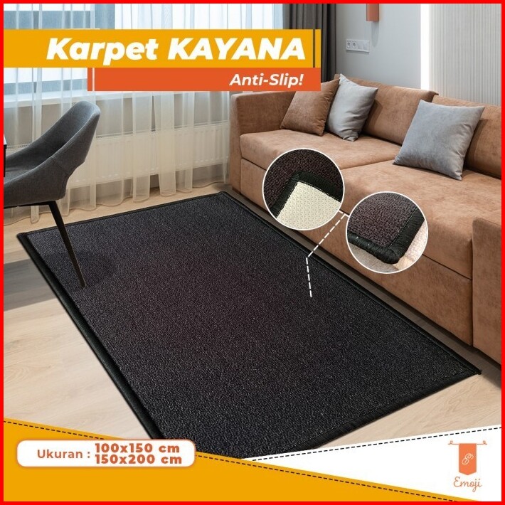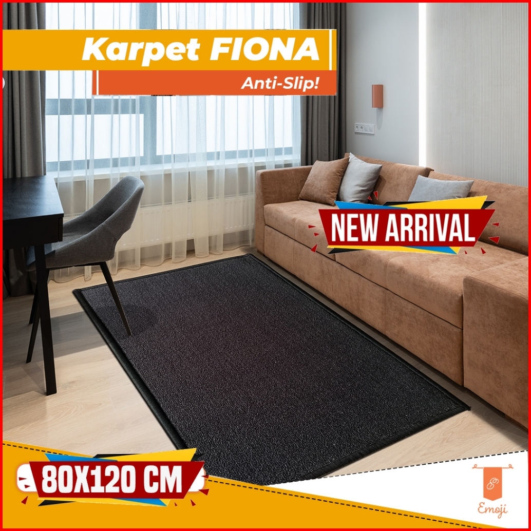 Karpet Polos Alas Lantai Minimalis Fiona Black Anti Slip 80x120 Cm