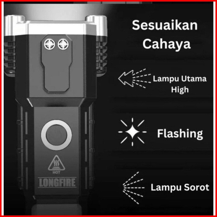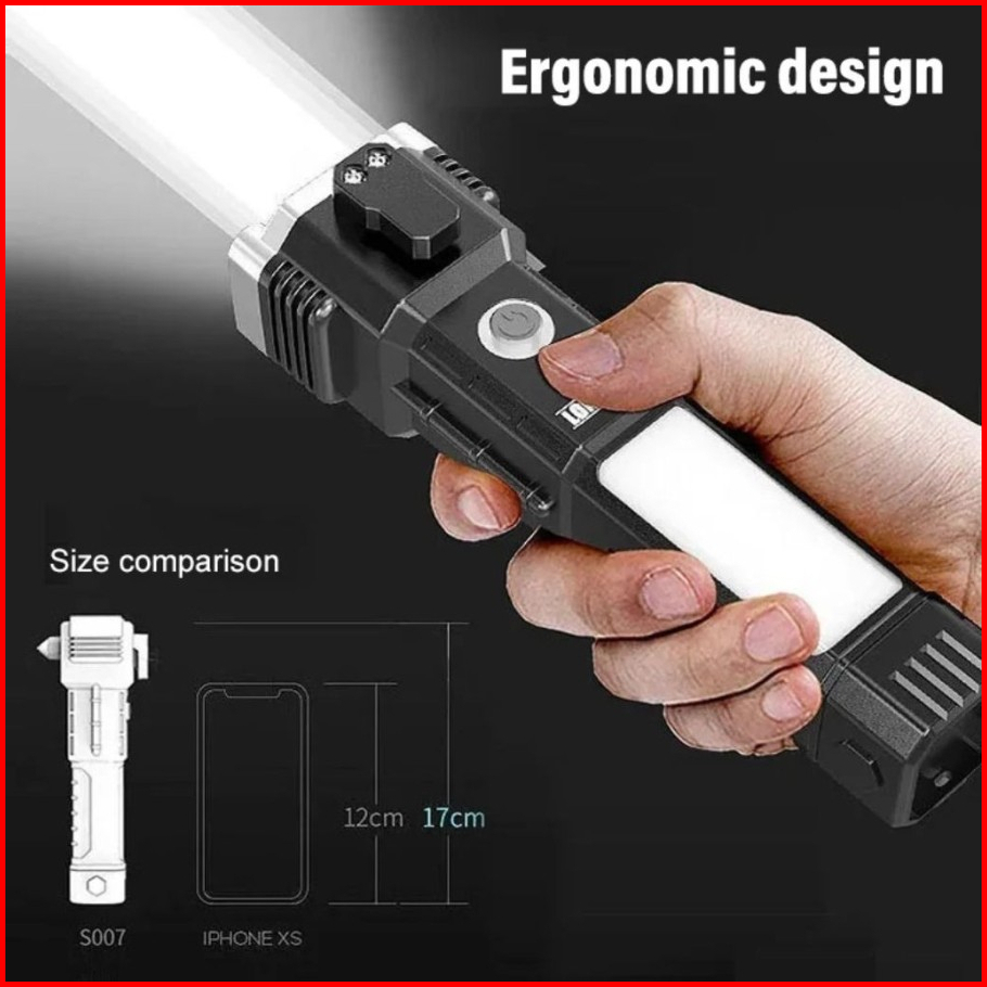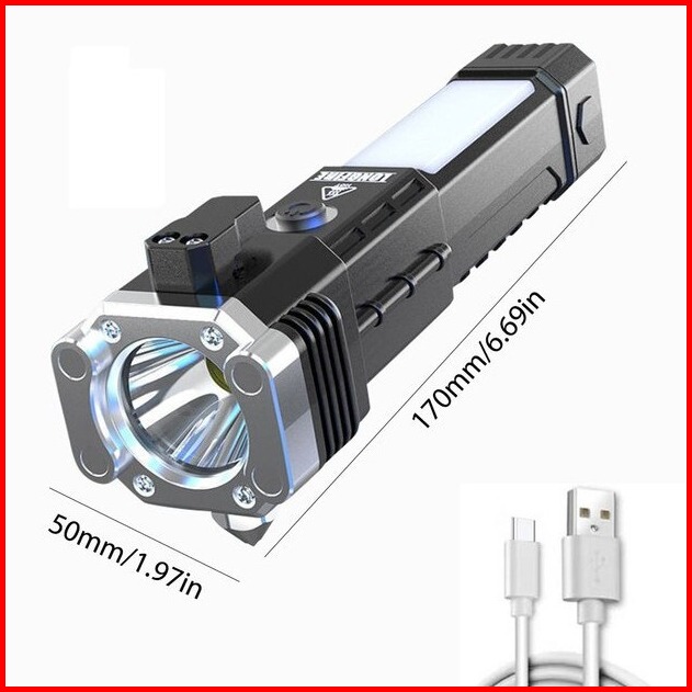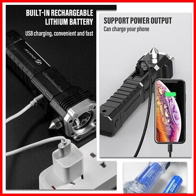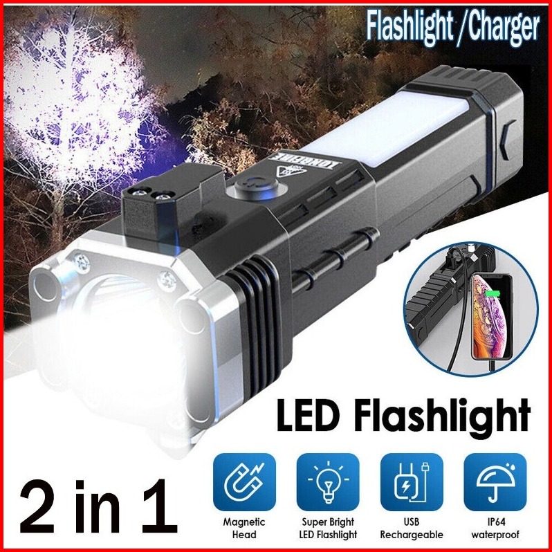 Je.id Senter Led Super Terang Senter Palu Senter Swat Senter Rechargeable 990000lm Senter Led Cob Palu Pengaman Kaca Mob