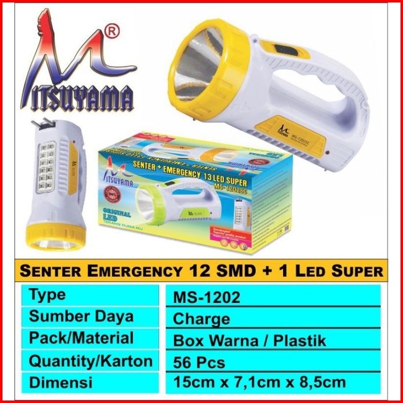 Senter Tangan Mitsuyama Ms-1202 Led Super Terang Dapat Dicas Tali