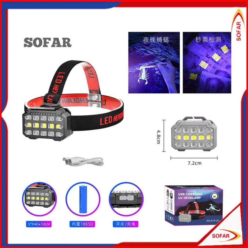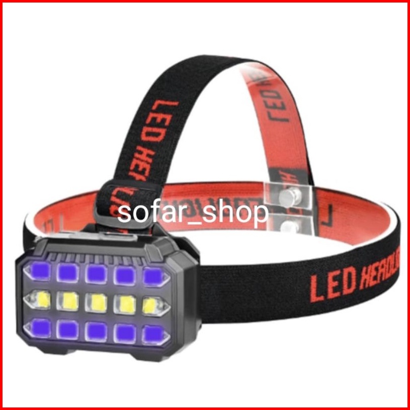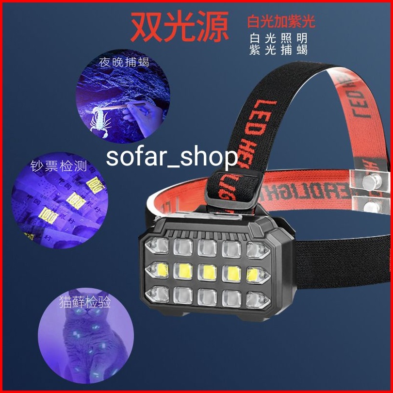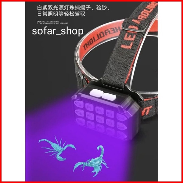 Senter Kepala Plus Uv Usb Charging Uv Headlamp
