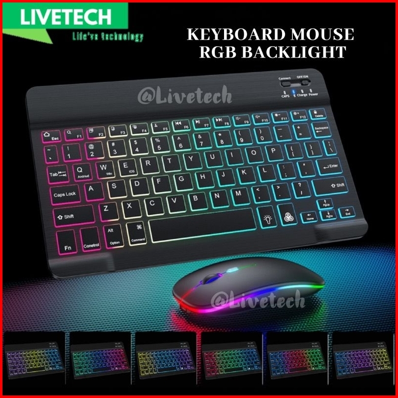 Livetech Keyboard Bluetooth Wireless Mouse Led Backlight Backlit For Tablet Pc Pad Laptop Android Iphone