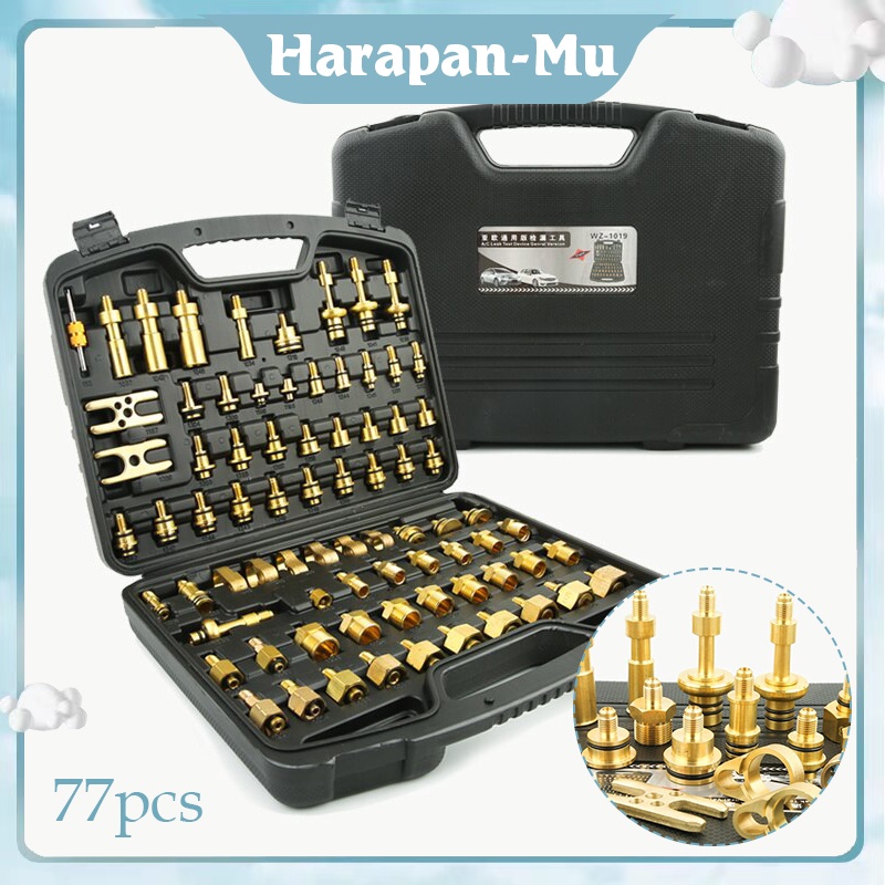 77 Pcs/Set Bahan Tembaga Otomotif Ac Detektor Kebocoran Uji Kebocoran Adaptor Fitting Deteksi Kebocoran Alat Perbaikan A