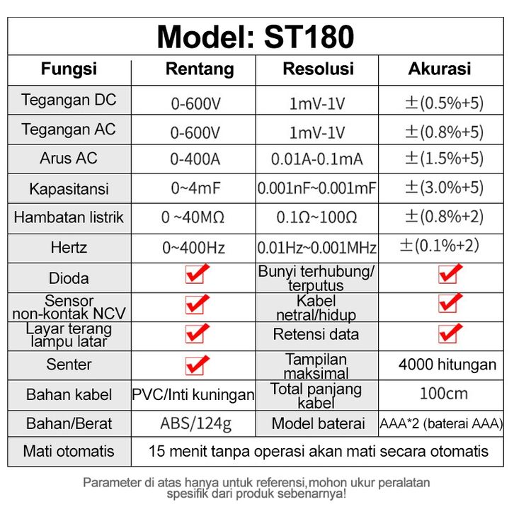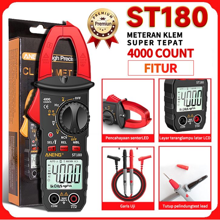 Tang Ampere Multitester Digital Pengukur Arus & Tegangan Listrik AC/DC DL ST180 Digital Clamp Meter