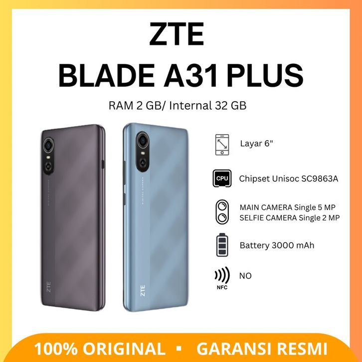 [ HP MURAH ] ZTE BLADE A31 PLUS 2GB/32GB GARANSI RESMI 1 TAHUN