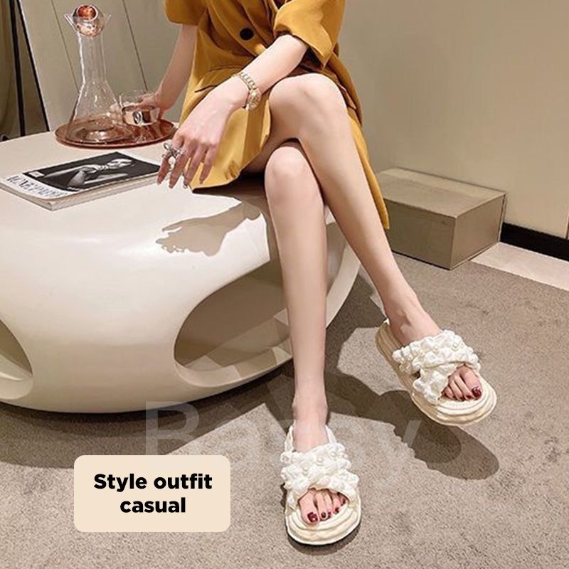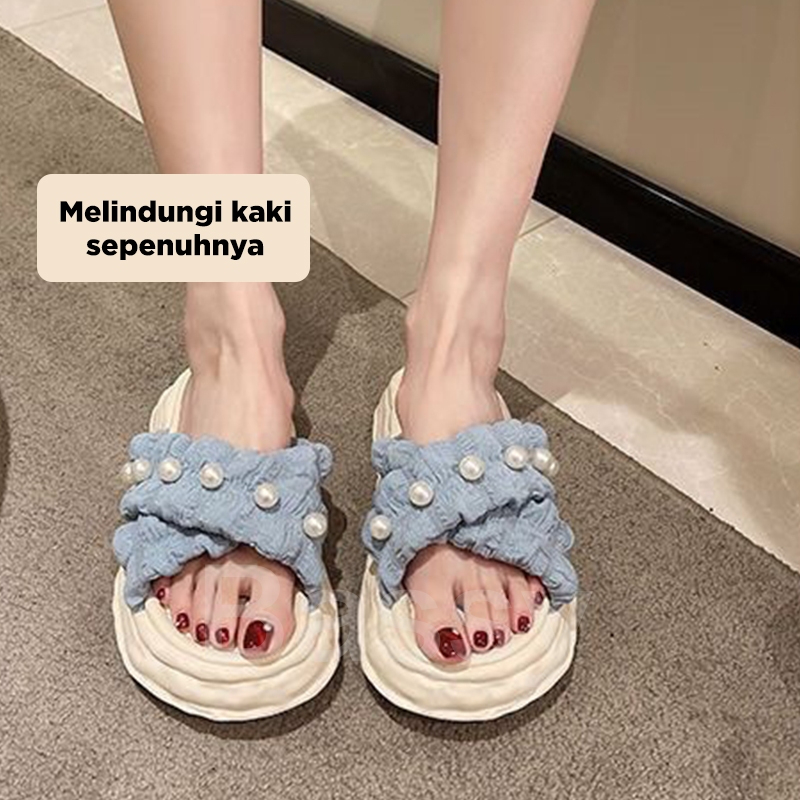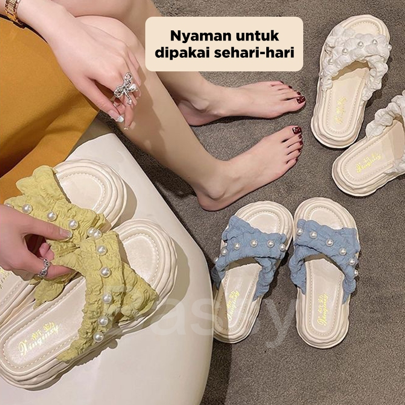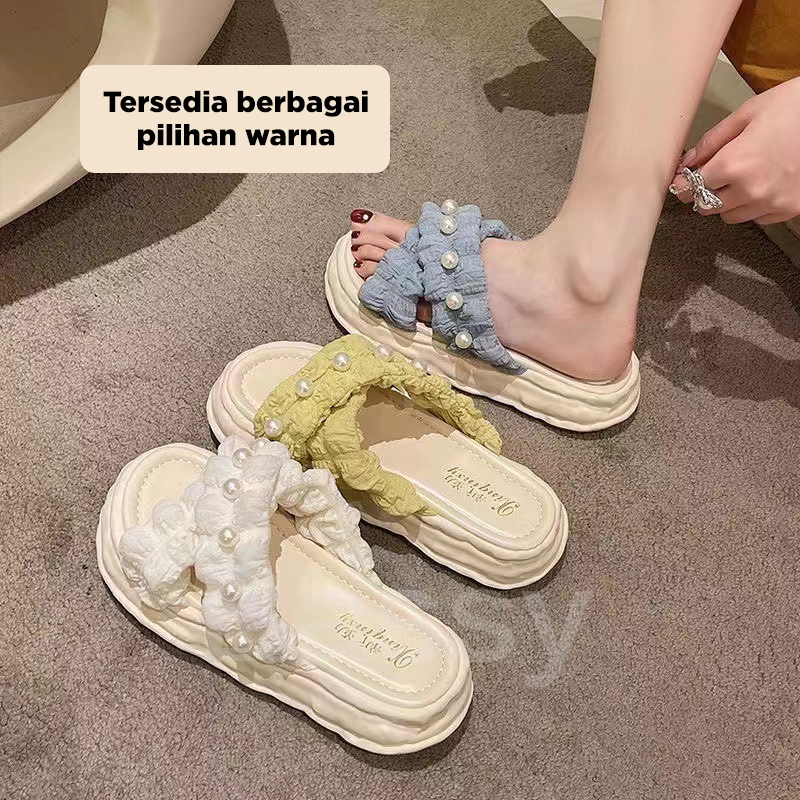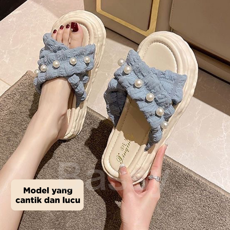 sandal wanita kekinian kondangan import simple fladeo heels jelly wedges dewasa karet murah korea style kicker original