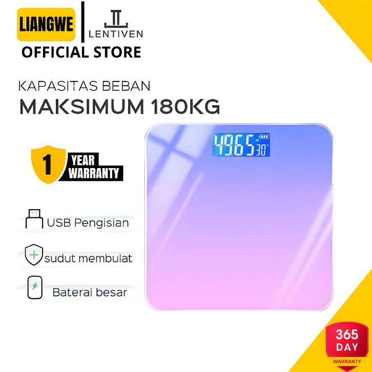 LIANGWE LENTIVEN Timbangan Badan Kaca Digital Body Elektronik Kartun 180kg USB Charging Anti Pecah Layar LCD