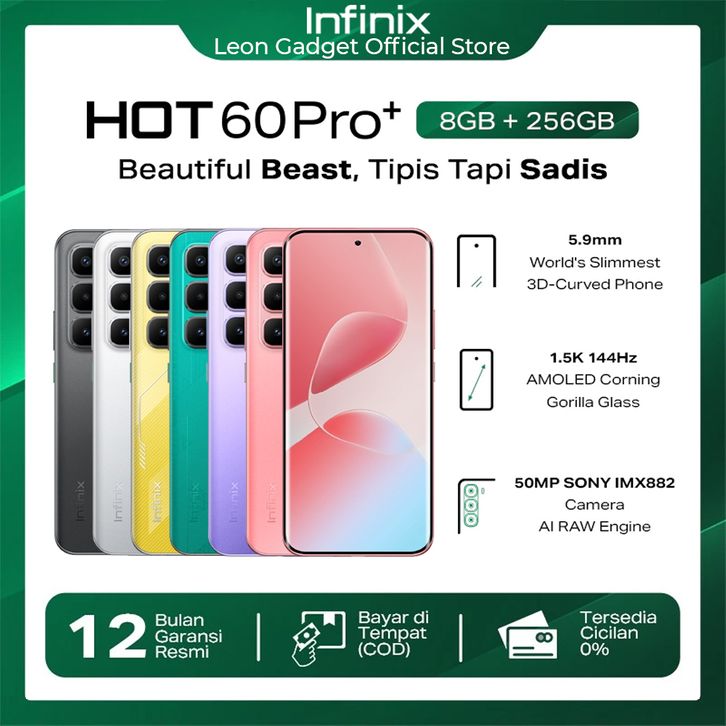 Infinix Hot 60 Pro+ Plus 8/128GB + 8/256GB - Garansi Resmi 1 Tahun.