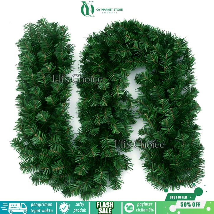 27 Meter Garland Daun Natal PREMIUM 27 Meter Garland Daun Natal TEBAL 200 Tangkai Christmas Garland Dekorasi Natal