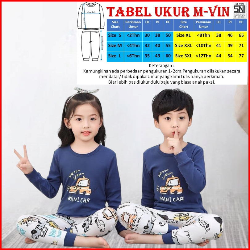 Baju Tidur Anak - Piyama Anak Unisex Baju Tidur Anak Laki Baju Tidur Anak Perempuan Setelan Anak Panjang Laki 1-9tahun M