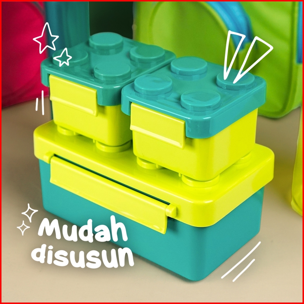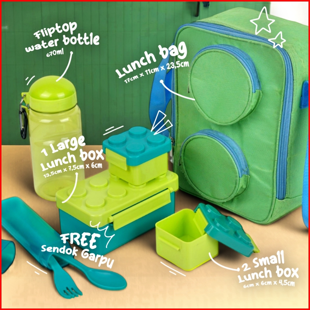 Technoplast Big Block Set Tas Bekal Makan Anak Anti Tumpah Kids Lunch Box Set Botol Minum Kotak Bekal Anak Lego Bpa Free