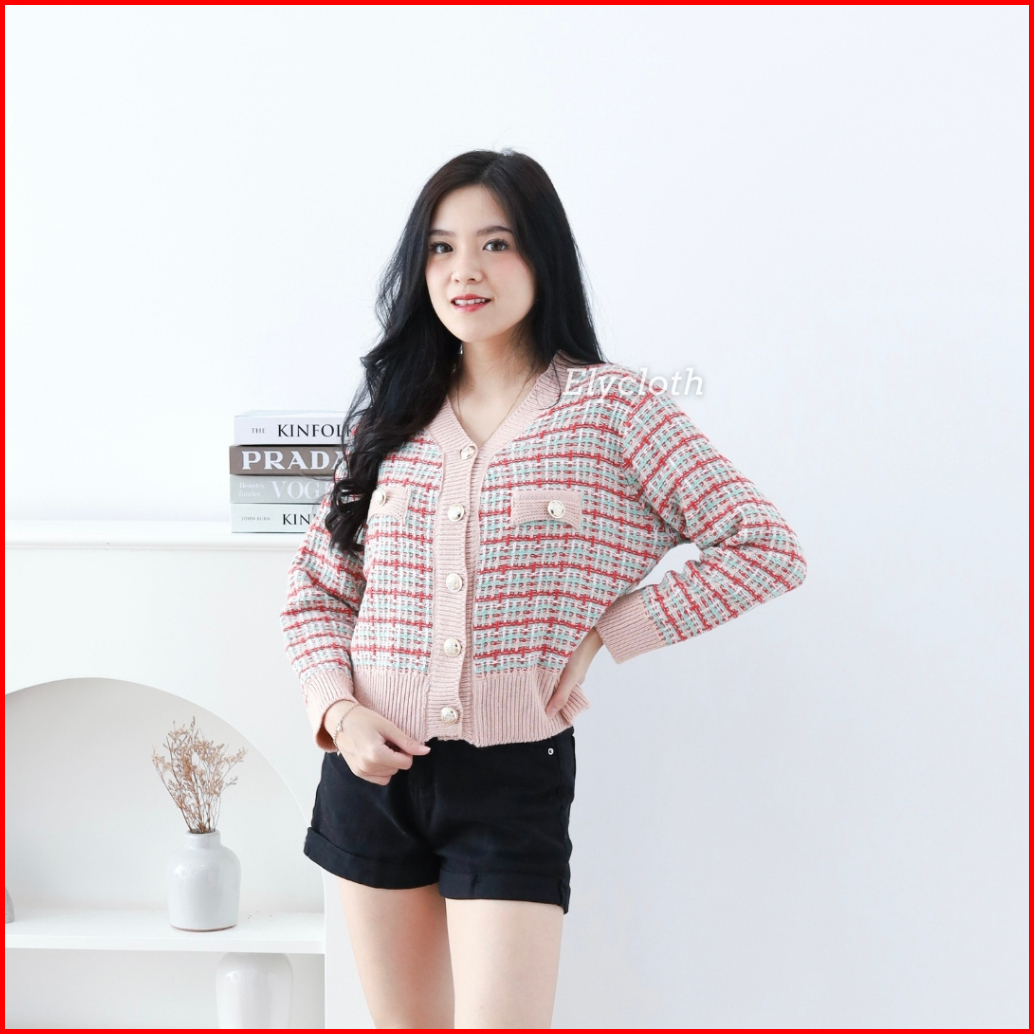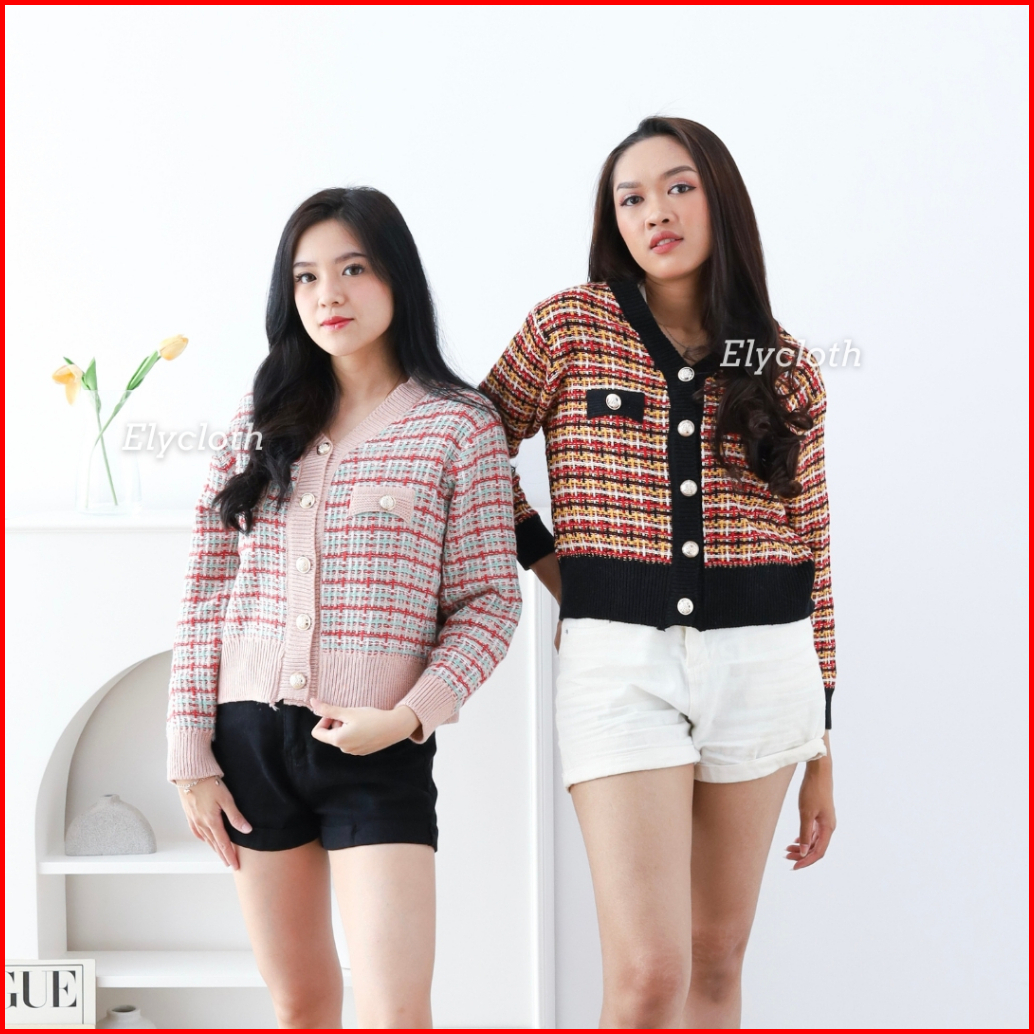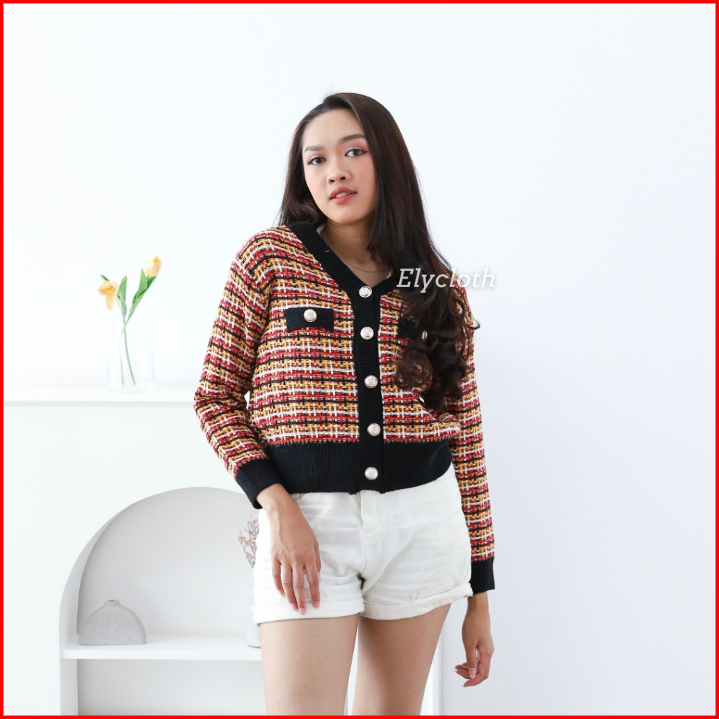 Elycloth Olivia Cardigan Cardigan Rajut Wanita Premium Tweed Knit