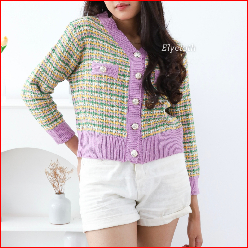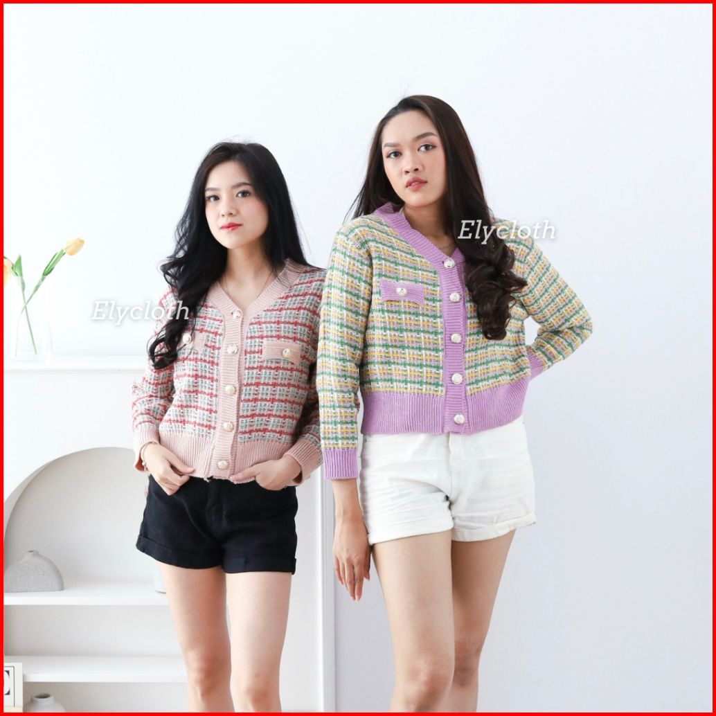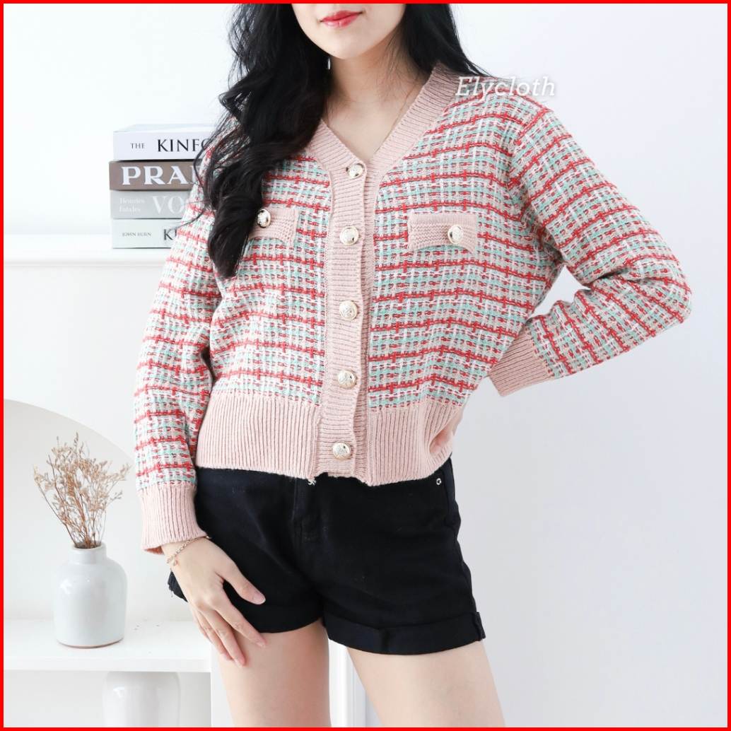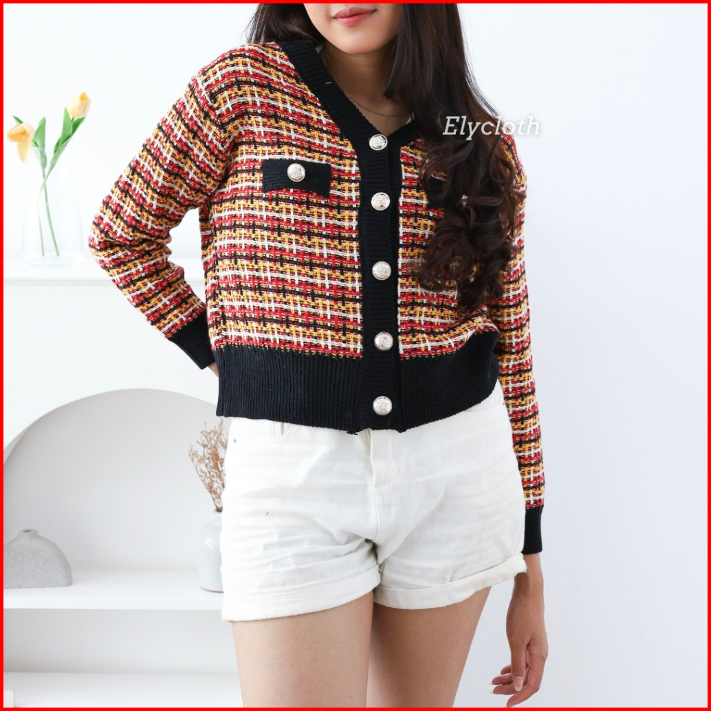 Elycloth Olivia Cardigan Cardigan Rajut Wanita Premium Tweed Knit
