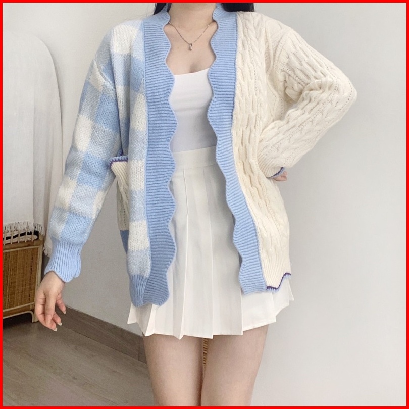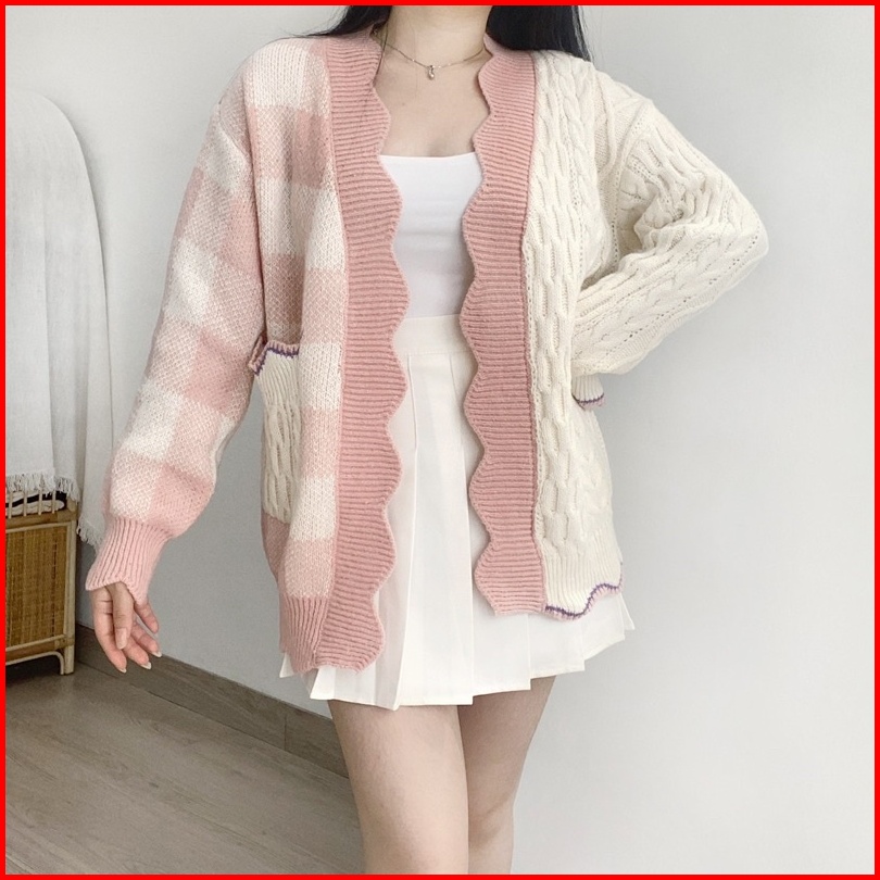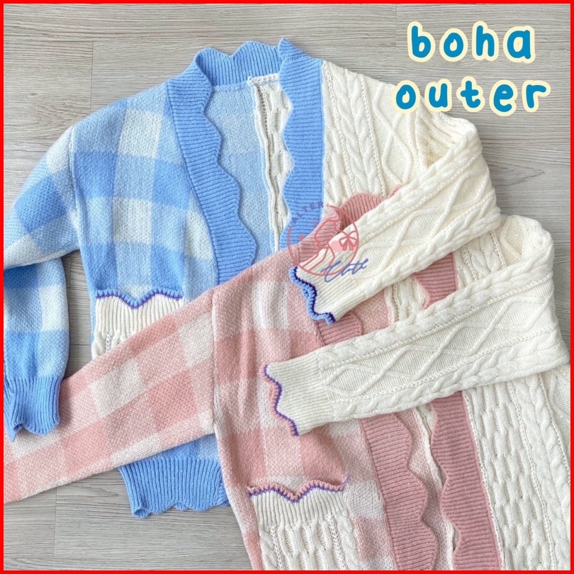 Alter.cloth - Boha Outer Kardigan Wanita Lengan Panjang Cardi Korea Two Tone Import Pink Blue Premium Fashion Style Kore