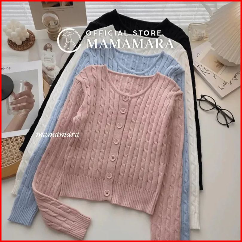 Mamamara - Premium Cable Knit Cropped Cardigan Ready Cardi Rajut Lengan Panjang Luaran Wanita Korea Polos