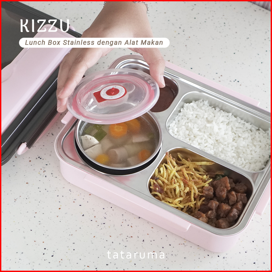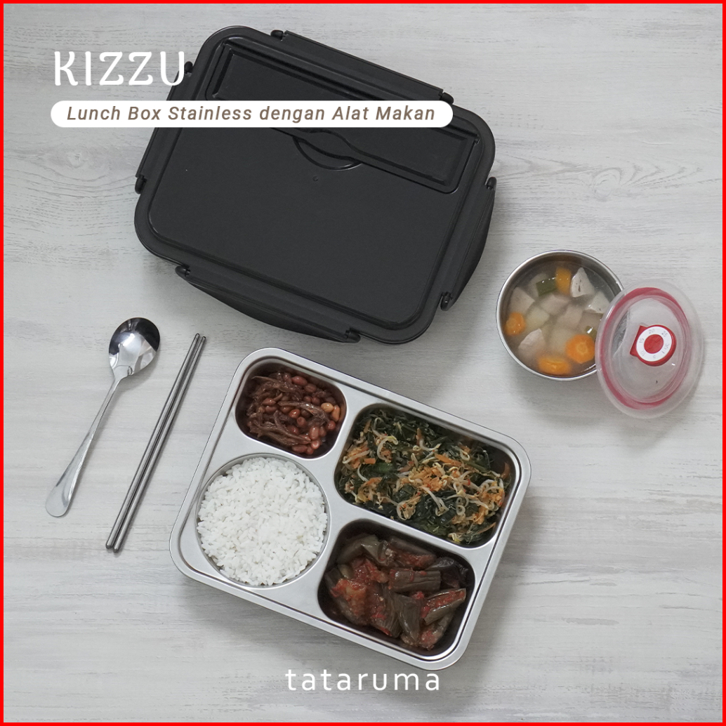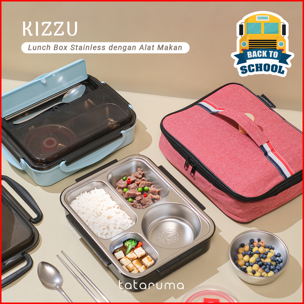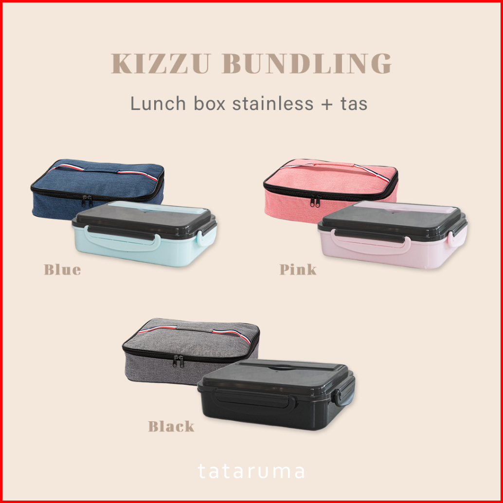 Tataruma Kizzu - Lunch Box Stainless 304 Sekat Kotak Bekal Dengan Alat Makan Dan Tas