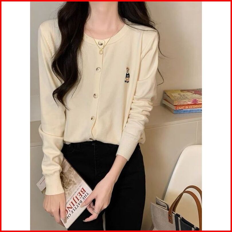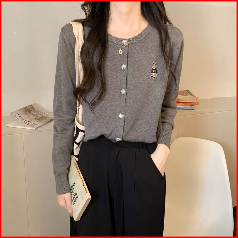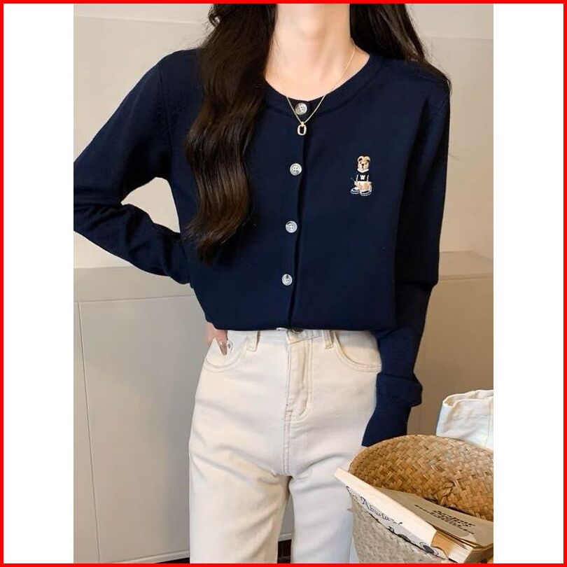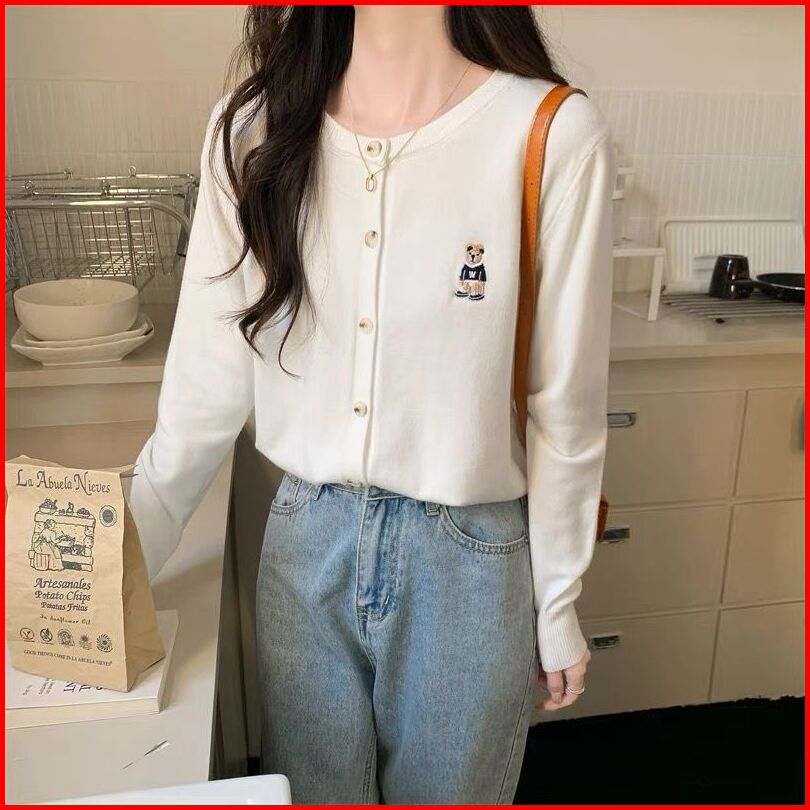 Beary Jeans Bj181 Korean Style Bear Cardigan Knitted Sweaters Women Kardigan Wanita Motif Beruang Long Sleeve Import