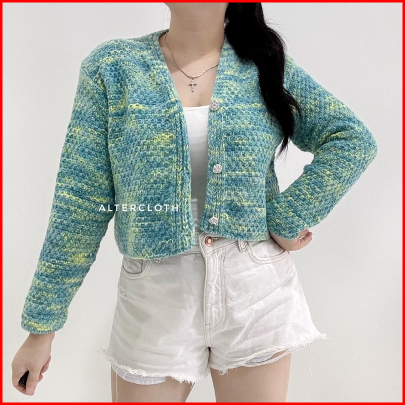 Alter.cloth - Denna Cardi Atasan Wanita Lengan Panjang Longsleeve Kardigan Korea Fashion Knitwear Motif Polos Plain Tie