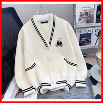Cardigan Outher Wanita - Cool Bear Bordir Sweater Cardigan Korean Style