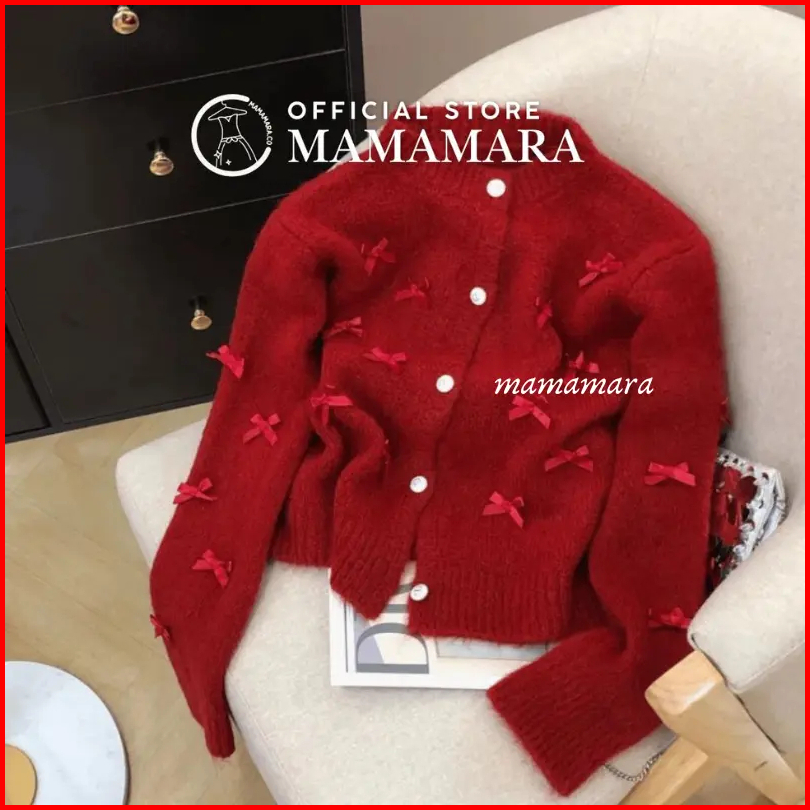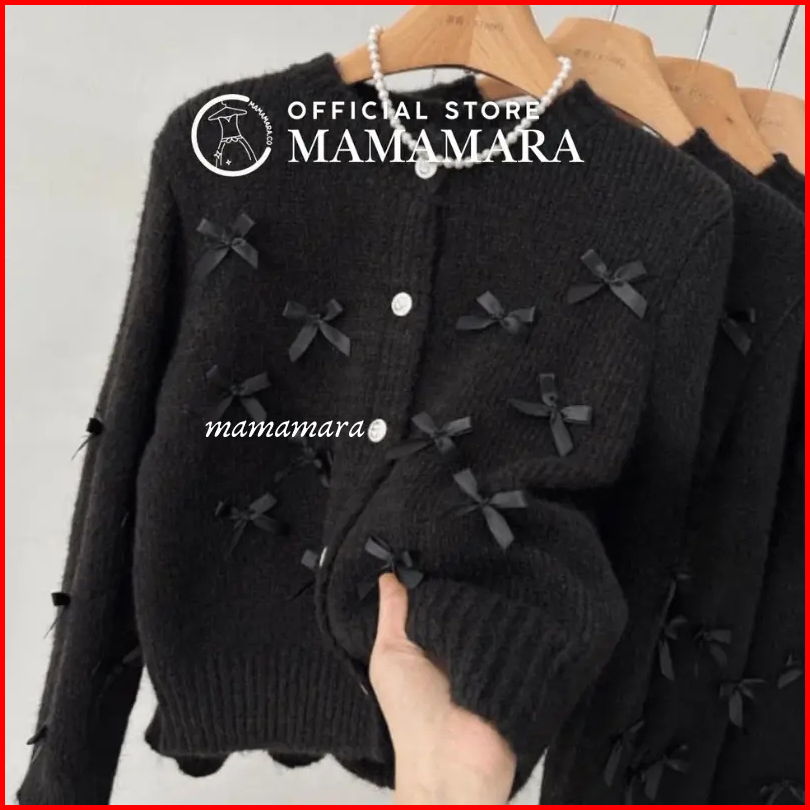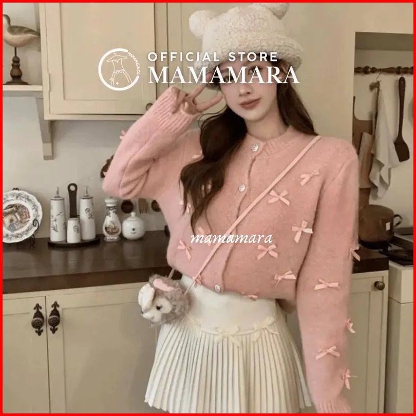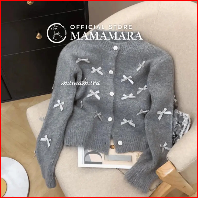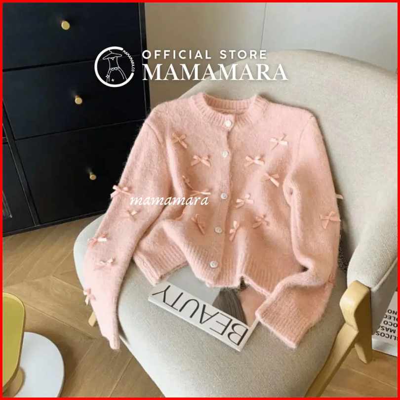 Mamamara - Cardigan Pita Coquette Aesthetic Knitwear Rajut Simple Wol Santai Crew Neck