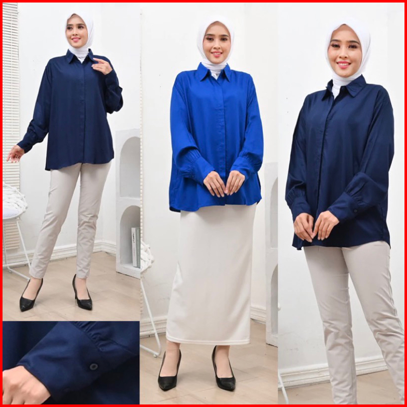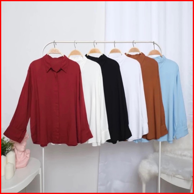 Kemeja Basic Rayon Blouse Polos Wanita Top Shirt Wanita