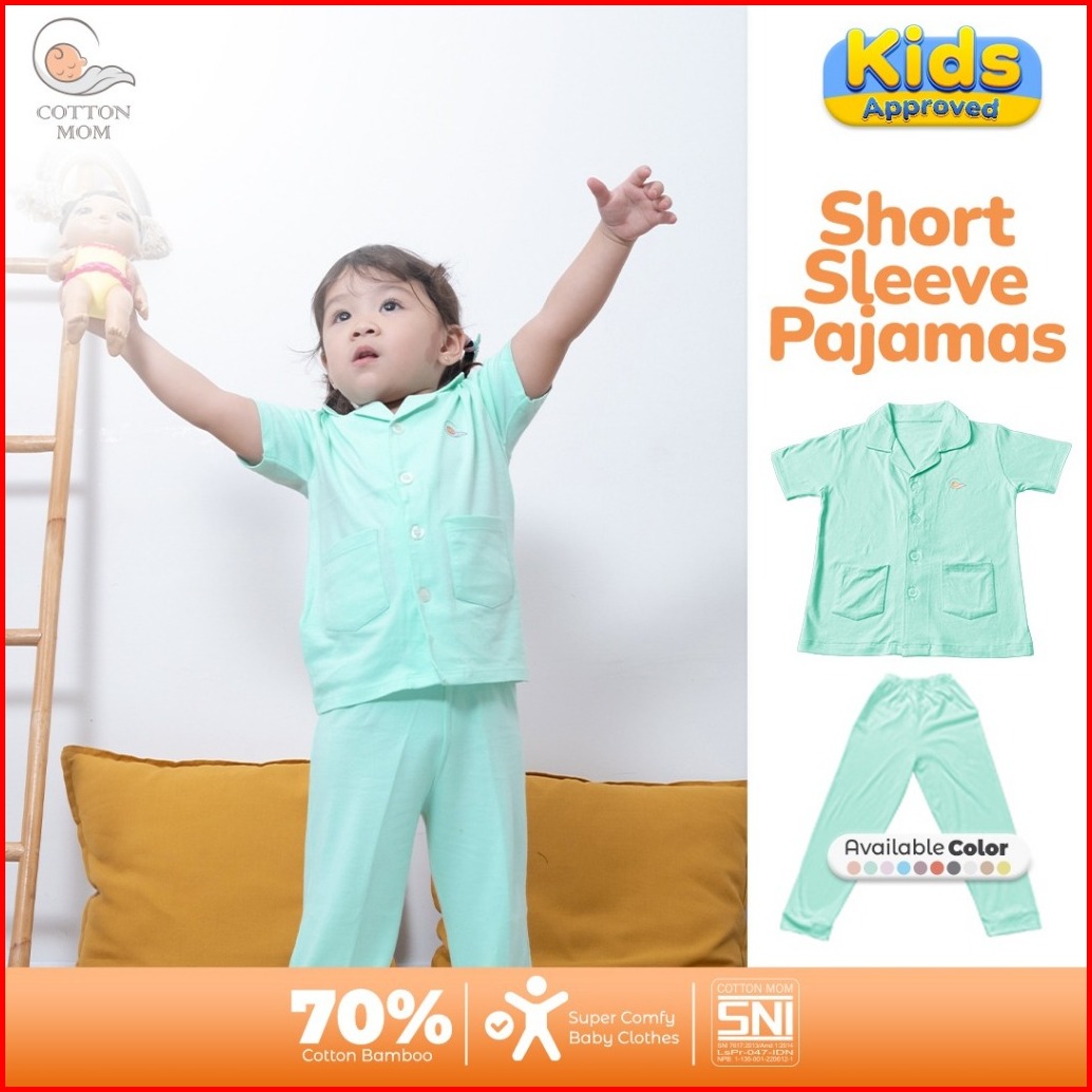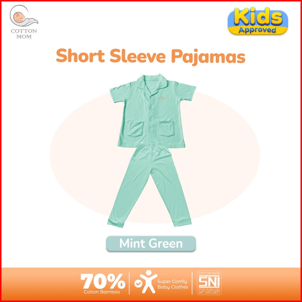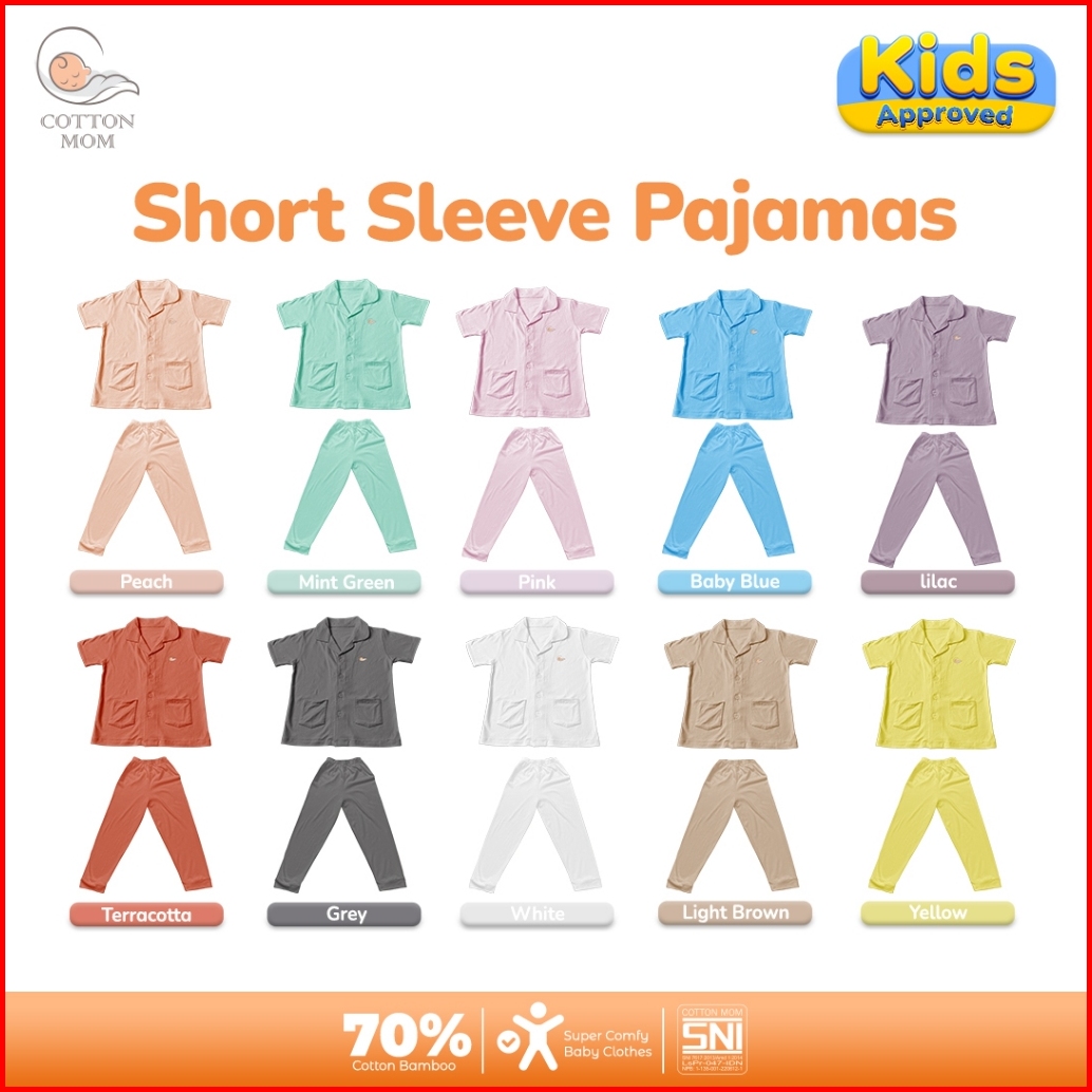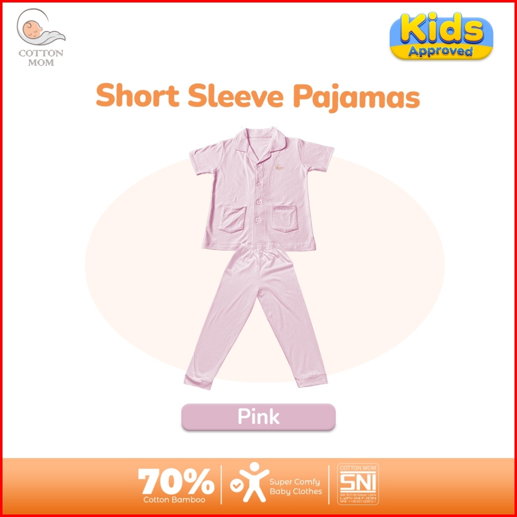 Cottton Mom Setelan Baju Tidur Piyama Kancing Lengan Pendek Anak-anak