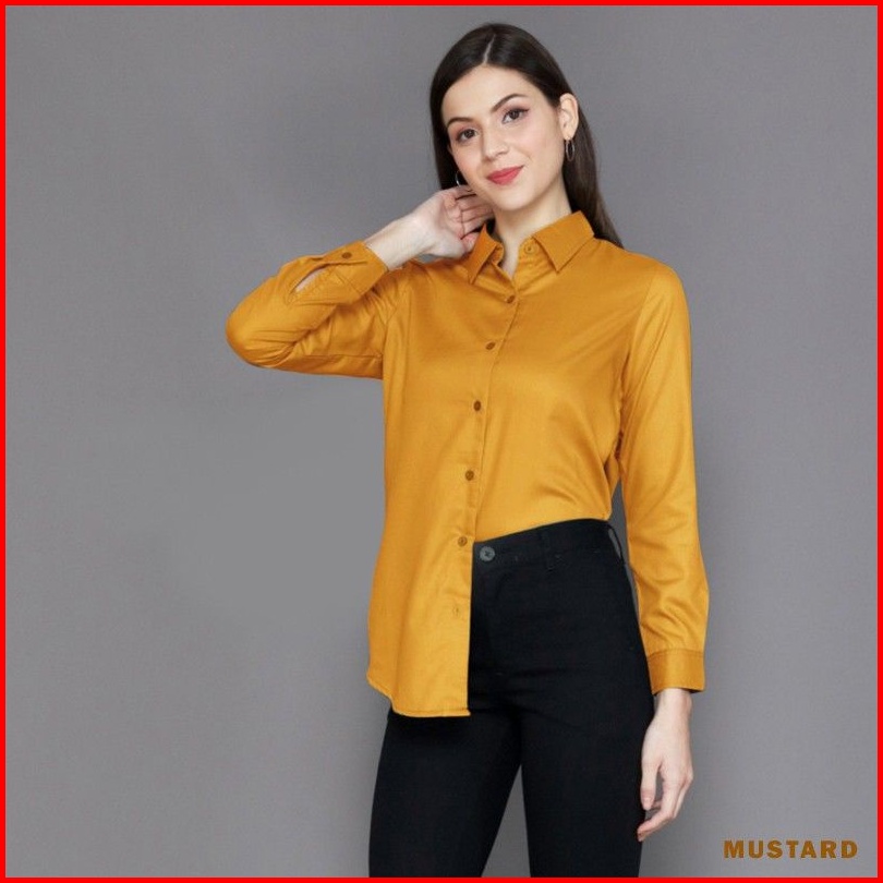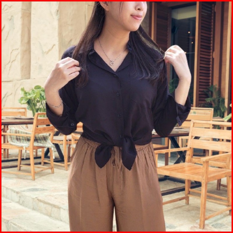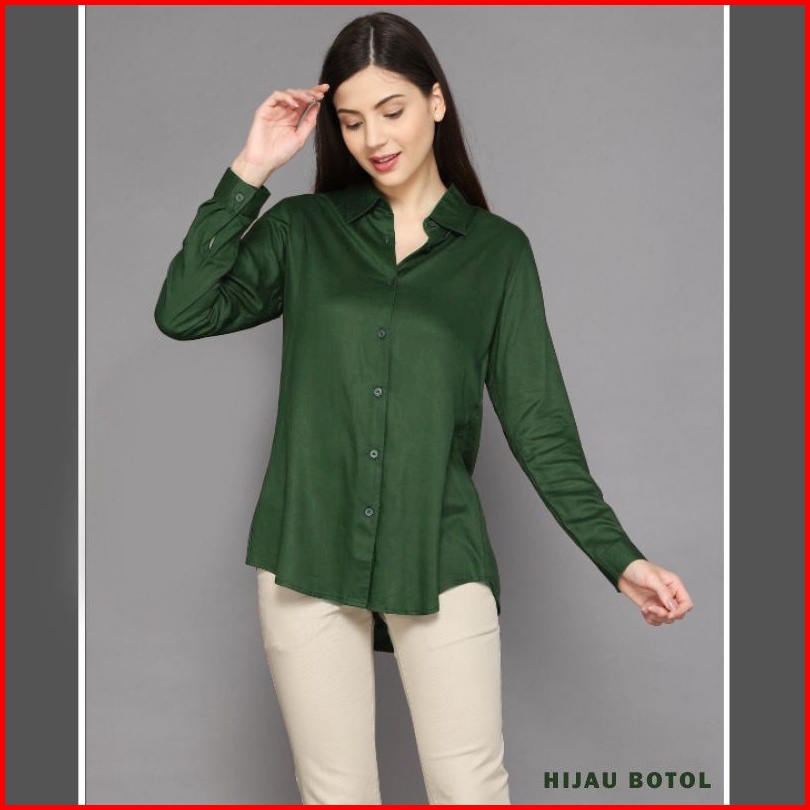 Kemeja Basic Polos Bahan Rayon Kemeja Blouse Wanita Bahan Adem Full Kancing