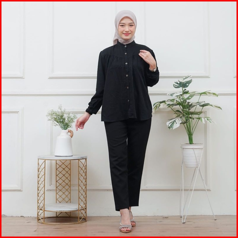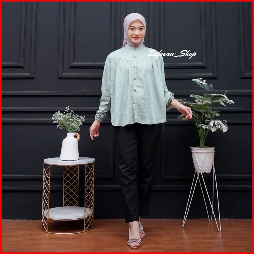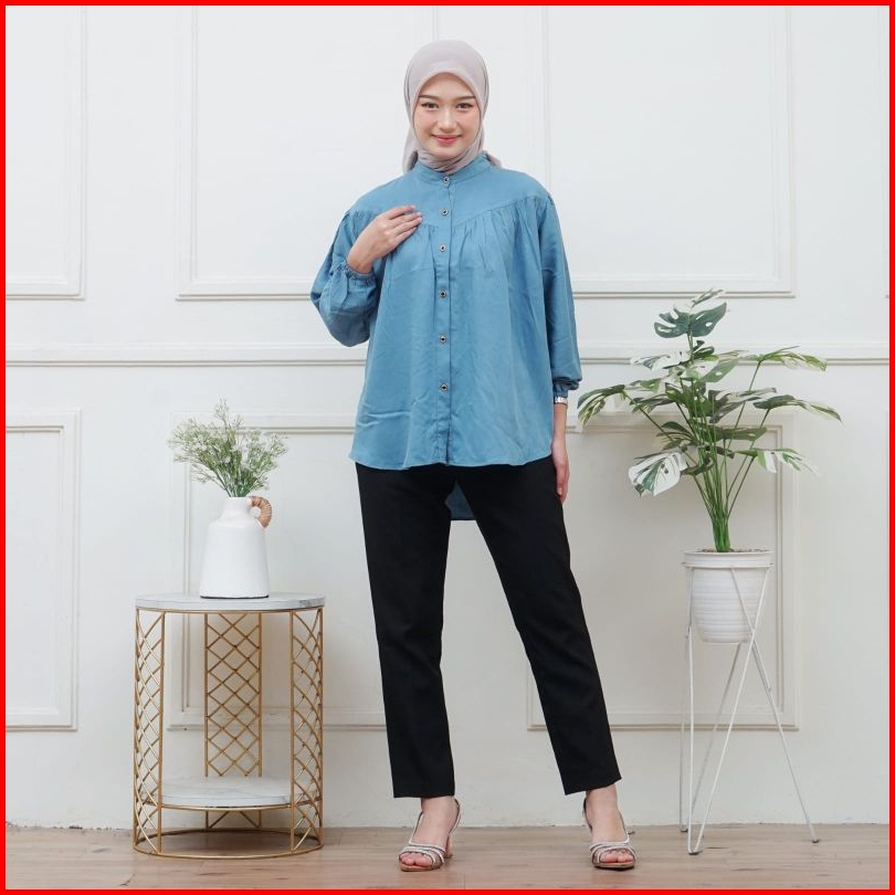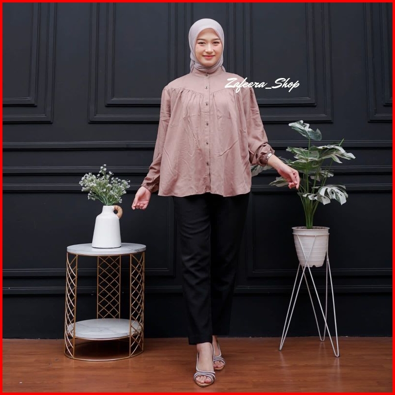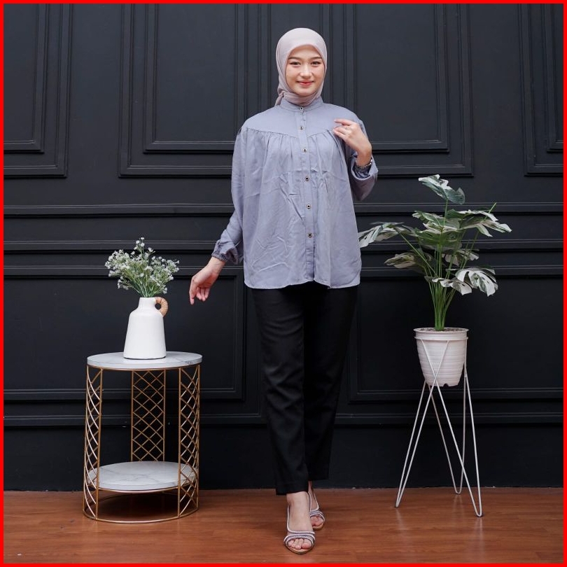 Blouse Rayon Twill Polos Premium Jumbo Atasan Wanita Jumbo Terbaru Lengan Karet Blouse Wanita Lengan Panjang Busui Frien