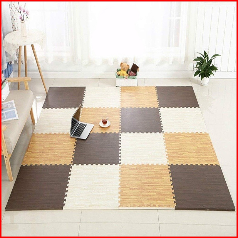 Ijnc Puzzle Mat Printing Wood Alas Lantai Eva Foam Motif Kayu Bambu 30 X 30cm Dekorasi Rumah