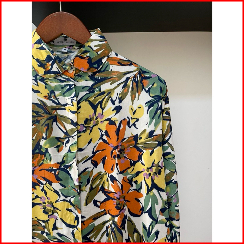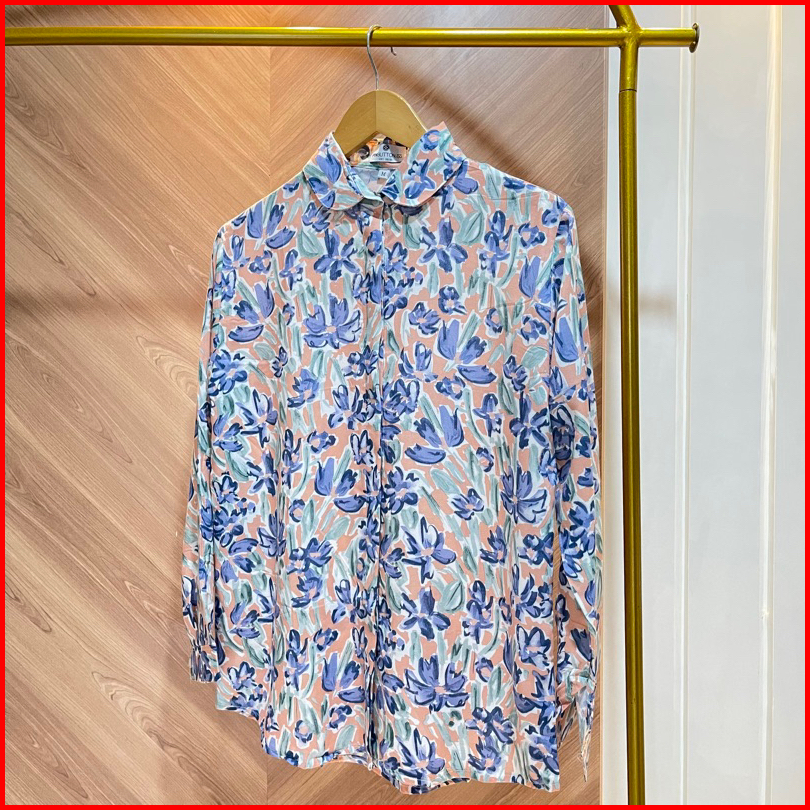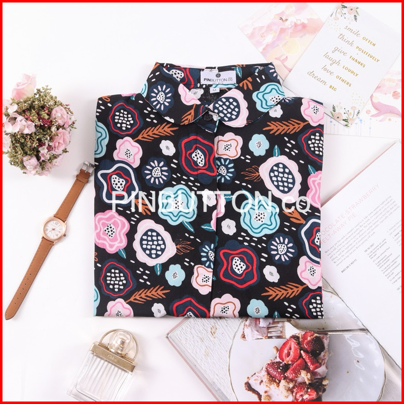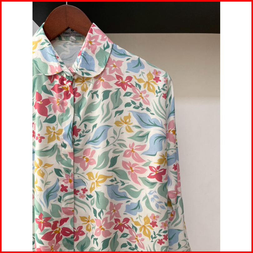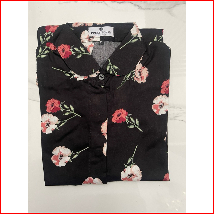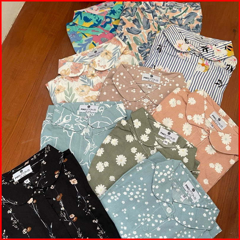 Kemeja Motif Bunga Flower Kemeja Rayon Viscose Wanita Motif Pattern Shirt - Pinbutton.co M L Xl Xxl Jumbo